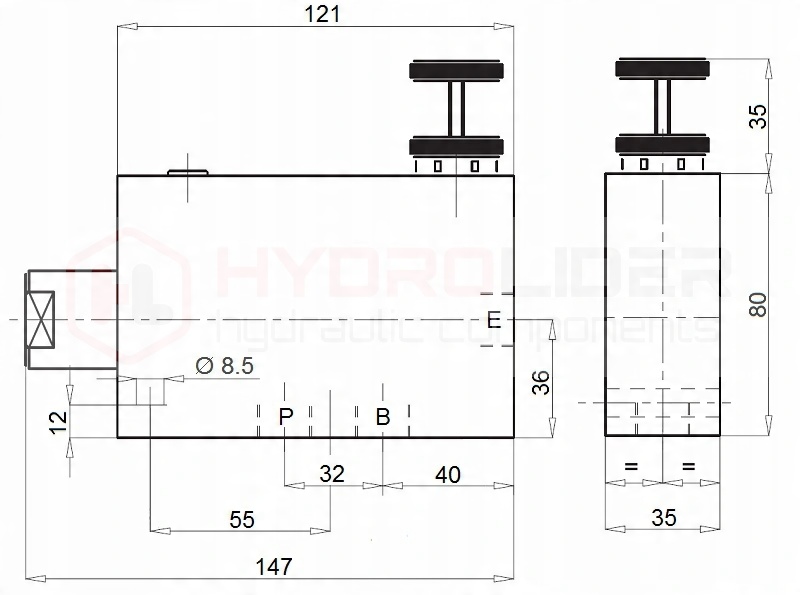 Підключіть E до лінії подачі, а P — до пріоритетного ресивера або до лінії гідравлічної системи, де потрібне регулювання потоку. Підключіть B до другого ресивера.