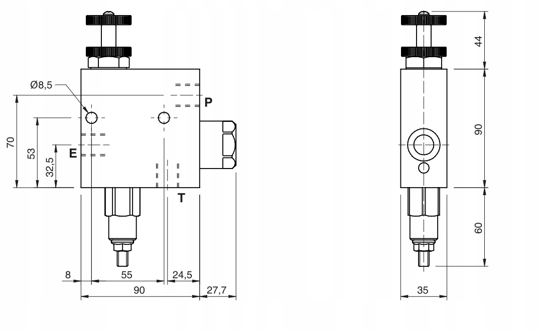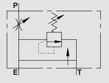 Підключіть E до лінії подачі, а P до ресивера або до лінії гідравлічної системи, де потрібне регулювання потоку та тиску. Підключіть T до зворотної лінії, що веде до бака.