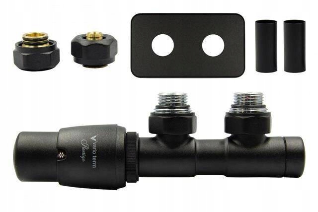 Термостатичний комплект Twins All In One Vario Term TSGS0214CFK/L(PEX), кутовий, чорний, структурний, лівий