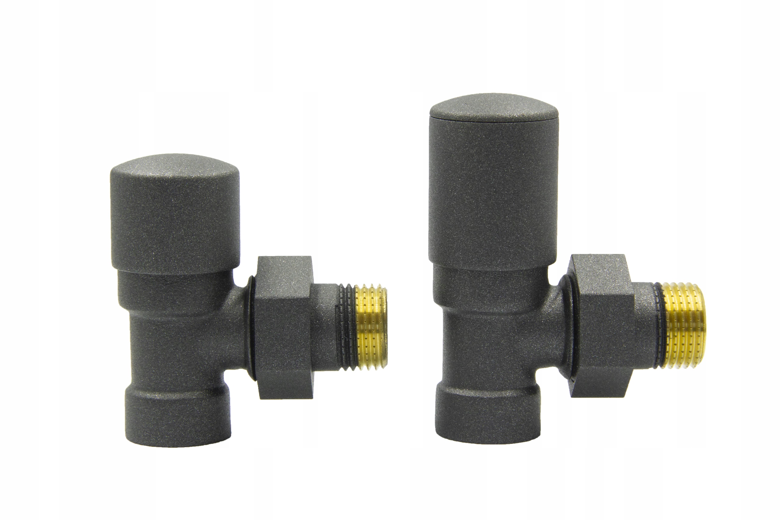 Клапани регулювання кута SWING структурного графітового кольору. Клапани закінчуються з боку встановлення внутрішньою різьбою діаметром 1/2 дюйма.
