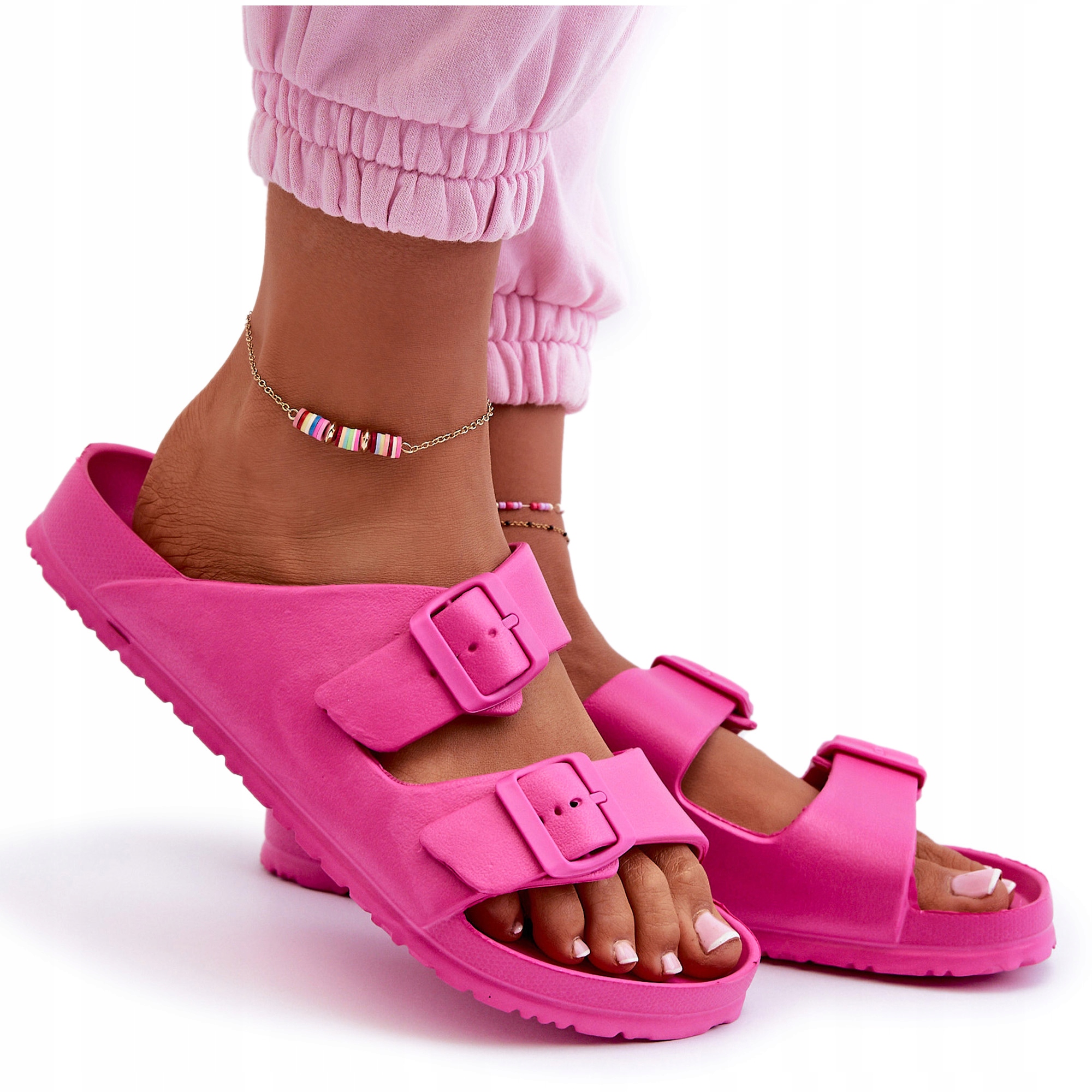KLAPKI DAMSKIE LEKKIE PIANKOWE Z KLAMRAMI NA BASEN FUKSJA 38