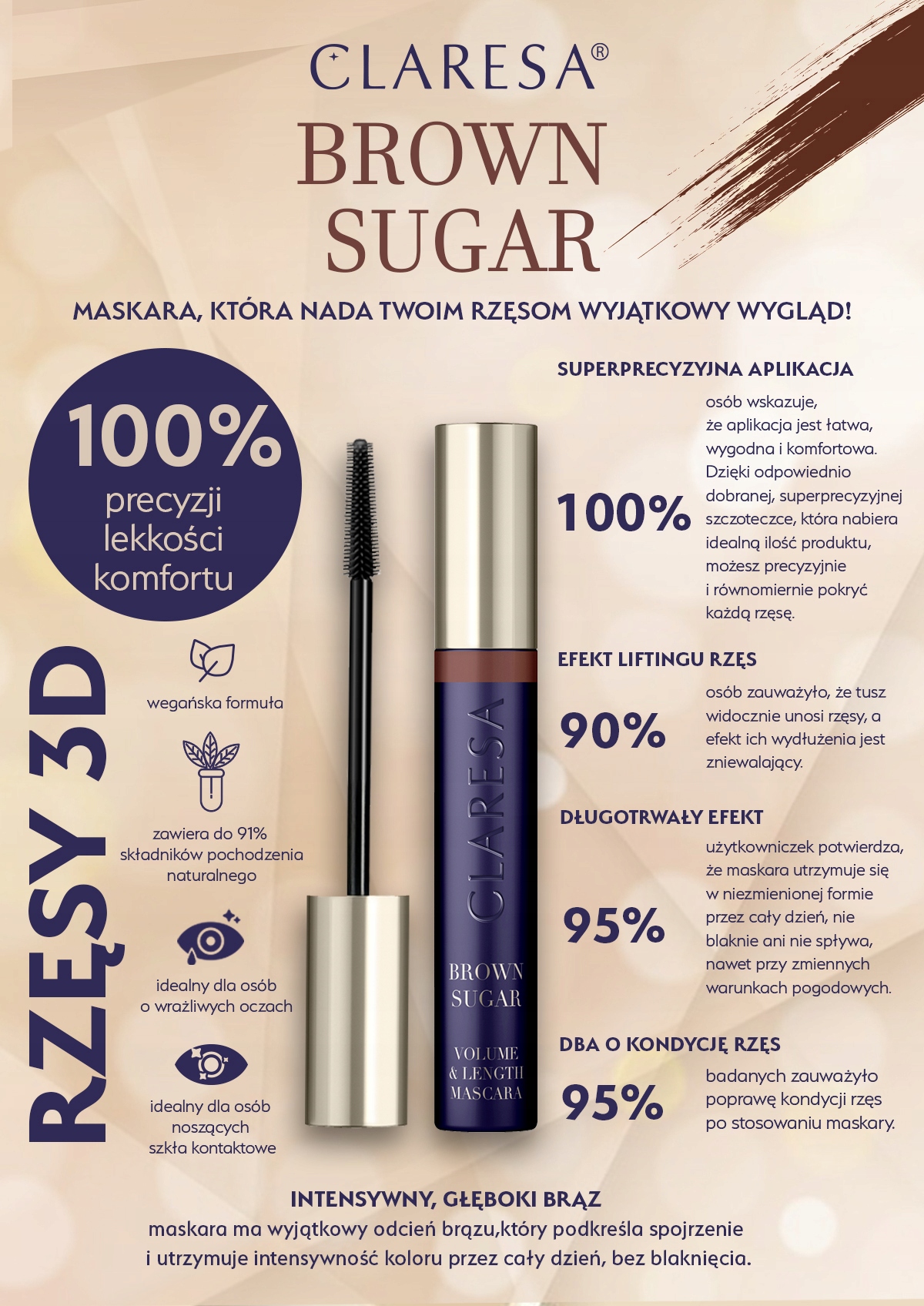 Клареса коричнева цукрова туш 10 г 3d туш - погляд з теплим, глибоким коричневим!