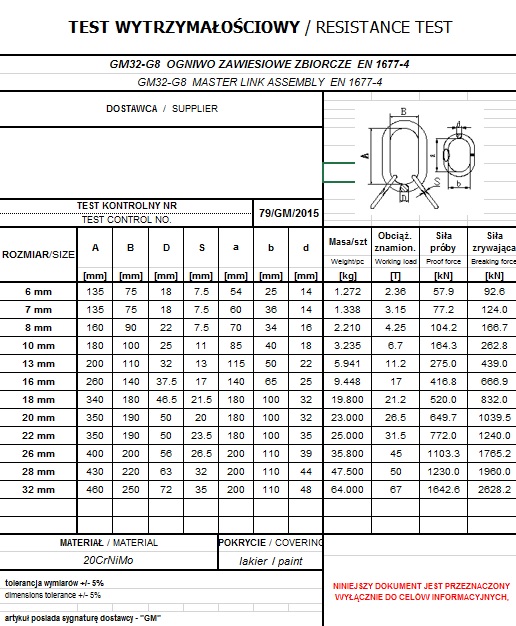 КЛАС 8 ЗБІРНА ЛАНКА 10 мм WLL 6.7T