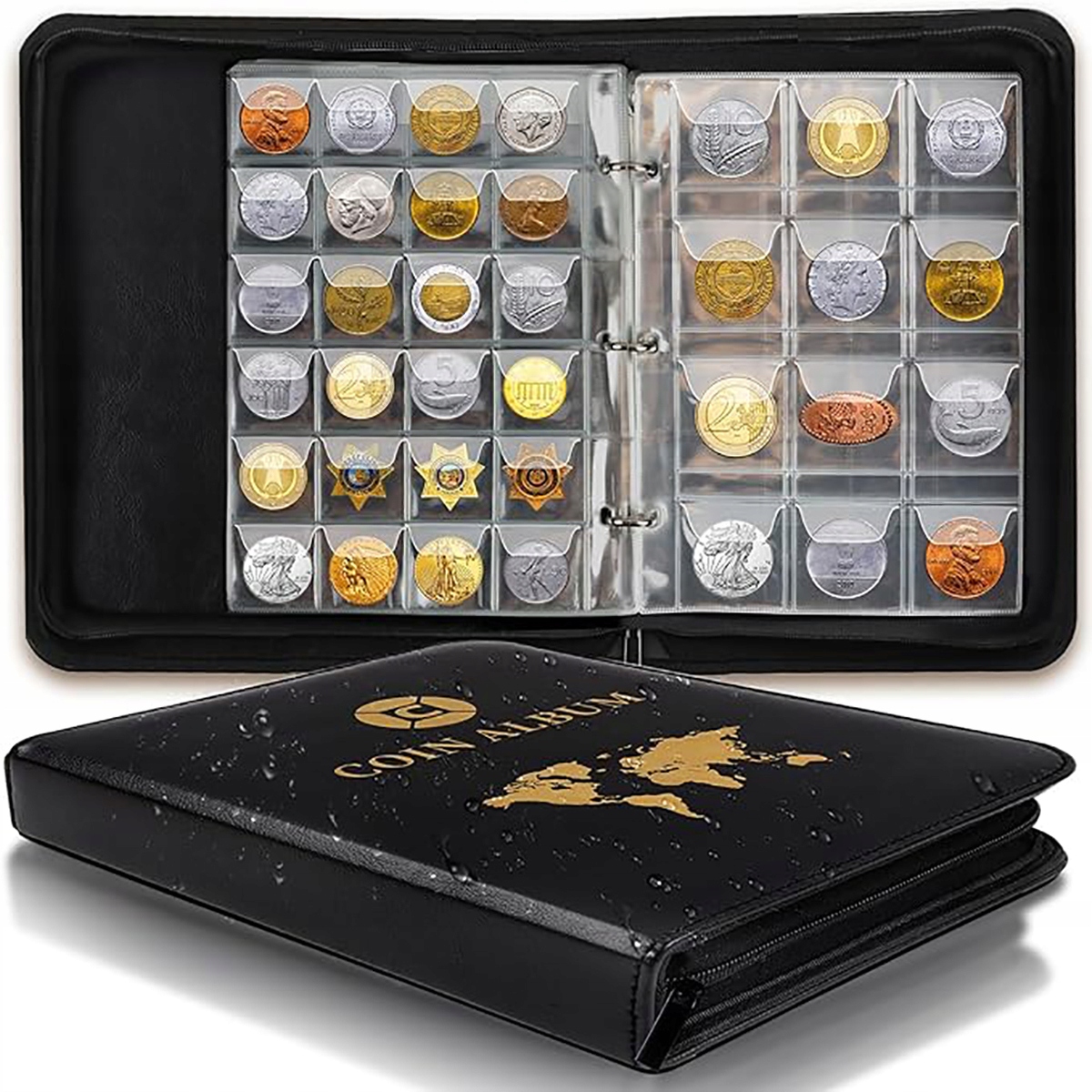 - Кожна сторона альбому для монет має окрему кишеню, а кожна кишеня для монет має нековзку кришку на верхній частині кишеню, що полегшує доступ до них, одночасно запобігаючи їх випаданню та випаданню. монети від ковзання.