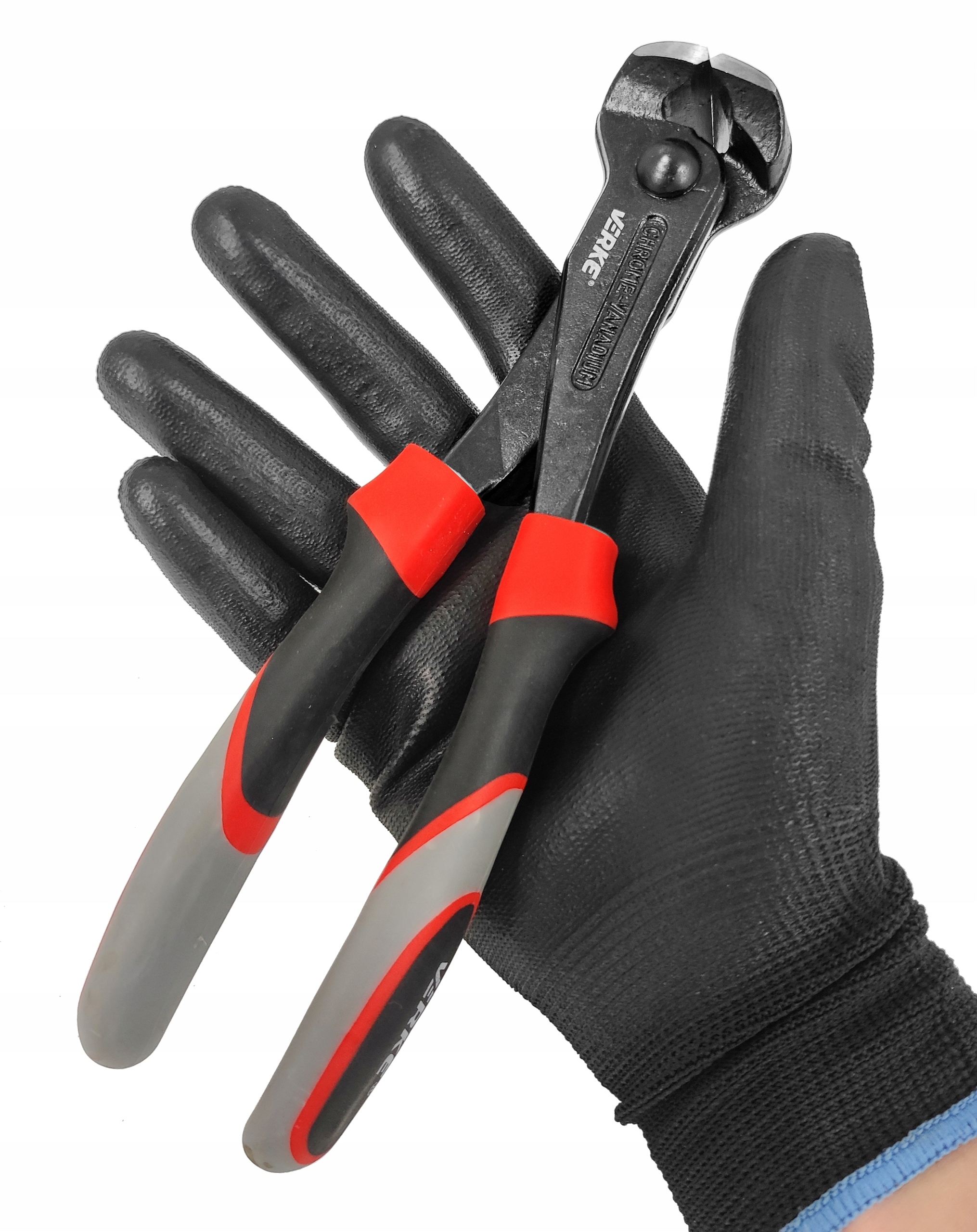 Ергономічна рукоятка оптимізованої форми забезпечує чудовий зчеплення рукою та ефективну передачу сили без відчуття від втоми. Високий коефіцієнт зчеплення забезпечує особливо високу продуктивність різання. Особливо корисний при зведенні парканів. Плоска нарізка болтів, цвяхів тощо. Кусачки Verke відрізняються довговічністю та високою якістю виготовлення.