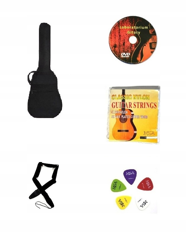 Гітара MSA добре виготовлена та міцна з корпусом із липового дерева. Для виготовлення використовується якісна акустично відібрана деревина. Шкатулка виготовлена з високоякісної деревини, покрита лаком, з гарно оформленим звуковим отвором. Завдяки дуже якісним матеріалам і струнам він звучить пишно і дуже добре налаштовується. Гриф тонкий, що робить гру на цьому інструменті дуже приємною. Гітари, рекомендовані інструкторами, м’які нейлонові струни, підвішені низько над шиєю, полегшують навчання.