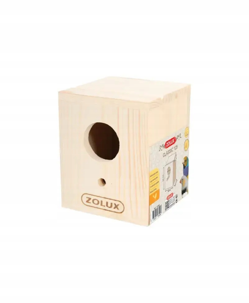 Це класичне дерев’яне гніздо було створено спеціально для екзотичних птахів. Його слід розмістити у найвищі положення в клітці птахів, в тихому місці. Його можна використовувати протягом року в птахах, які вважають за краще спати в гнізді або лише два -три рази на рік у селекційному сезоні.