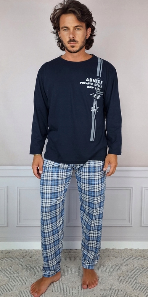 КЛАСИЧНА ЧОЛОВІЧА БАВОВНОВА ПІЖАМА З ДОВГИМ РУКАВОМ ДОВГІ ШТАНИ #L ADV