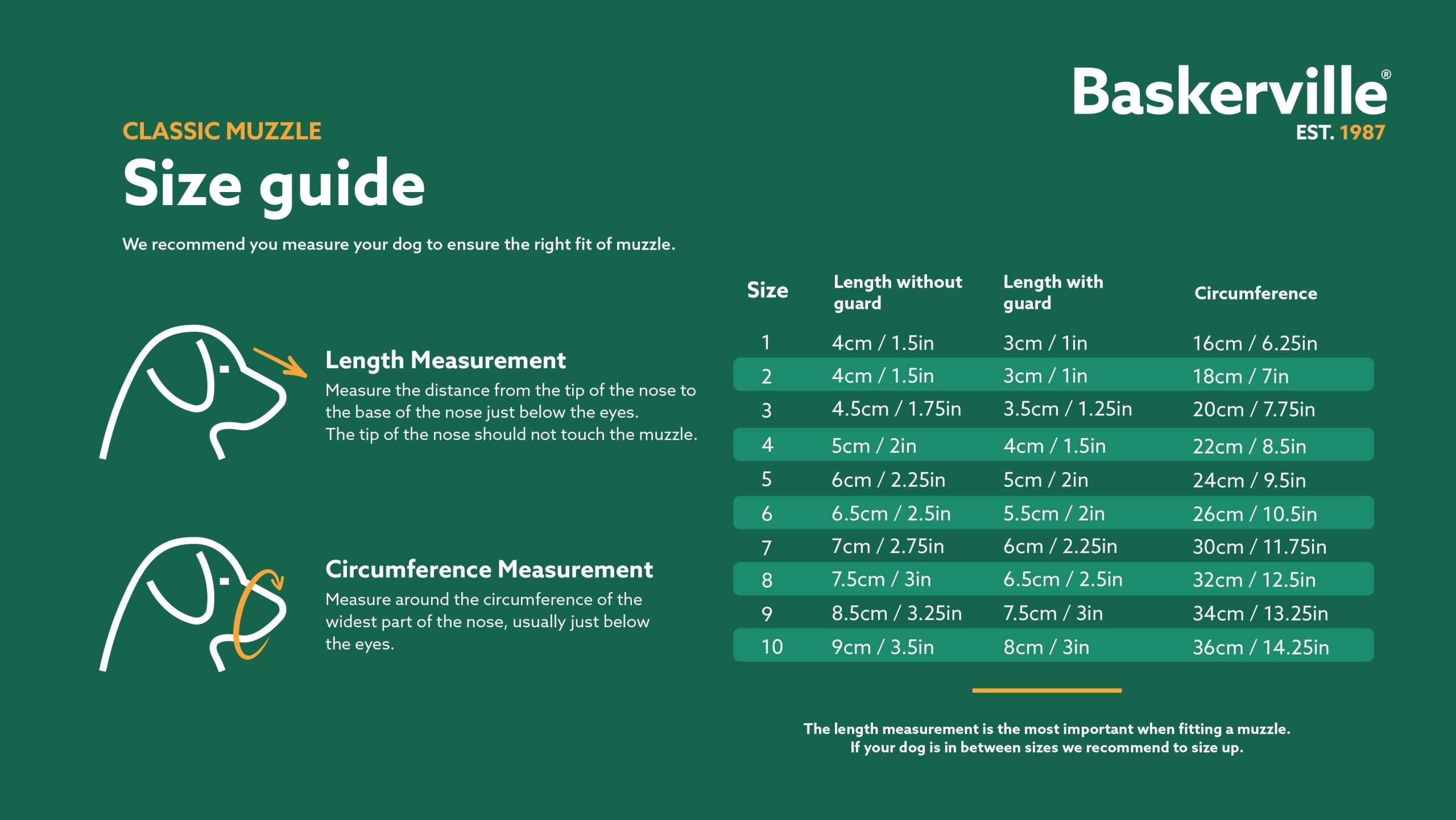 ✅ довжина рота - відміряйте від кінчика носа до основи рота (на очах). Якщо у вашої собаки, наприклад, 26 см з окружності рота, виберіть морду на кілька сантиметрів більше, щоб забезпечити комфорт та безпеку.