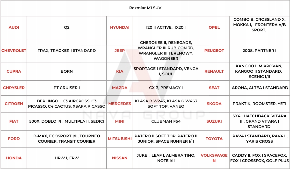 Розмір обкладинки: мінівен/позашляховик M1
