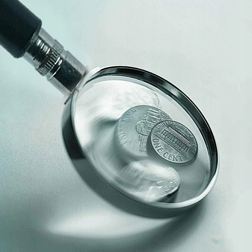 Класичне збільшувальне скло діаметром 90 мм є ідеальним пристроєм для щоденного використання. Його можуть використовувати ювеліри, нумізмати, техніки з обслуговування електроніки тощо. Ідеально підходить для переглядуювелірних виробів, марок, монет або для повсякденного використання використовувати. Завдяки великій лупі зображення дуже чітке та розбірливе.