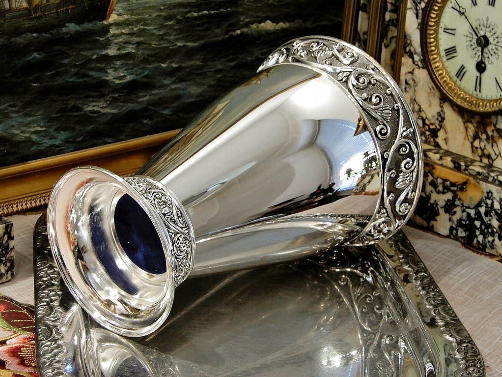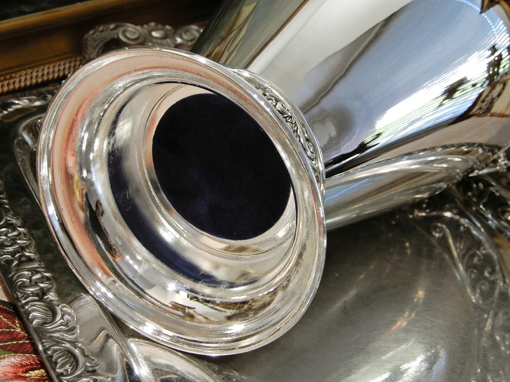 Запрошую купити чудову, стильну вазу. Виріб виготовлений зі сплаву цинку, покритий сріблом. Дуже гарна річ, нова, але кілька років тому. В наявності 6 шт. Можуть бути мінімальні сліди плину часу. Всередині помітні зміни кольору та нерівності, які не впливають на загальний стан вази.