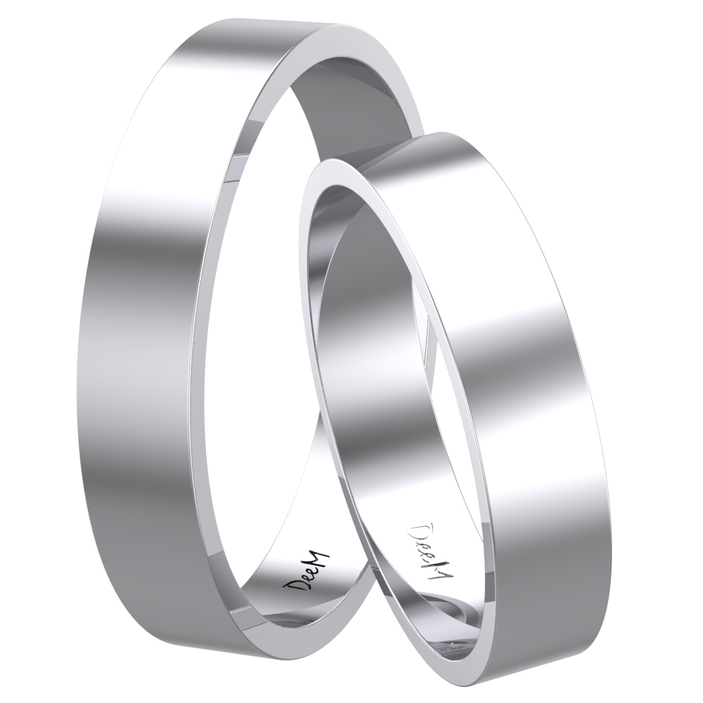 Класичне біле золото кільце 585 Пряма плоска 4,5 мм + гравірування безкоштовно