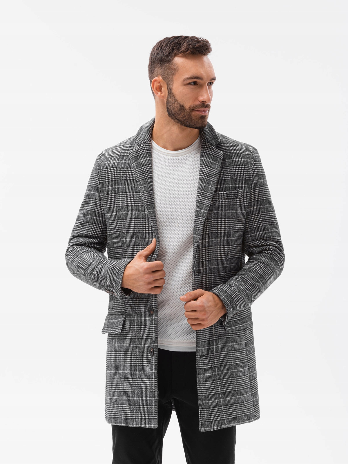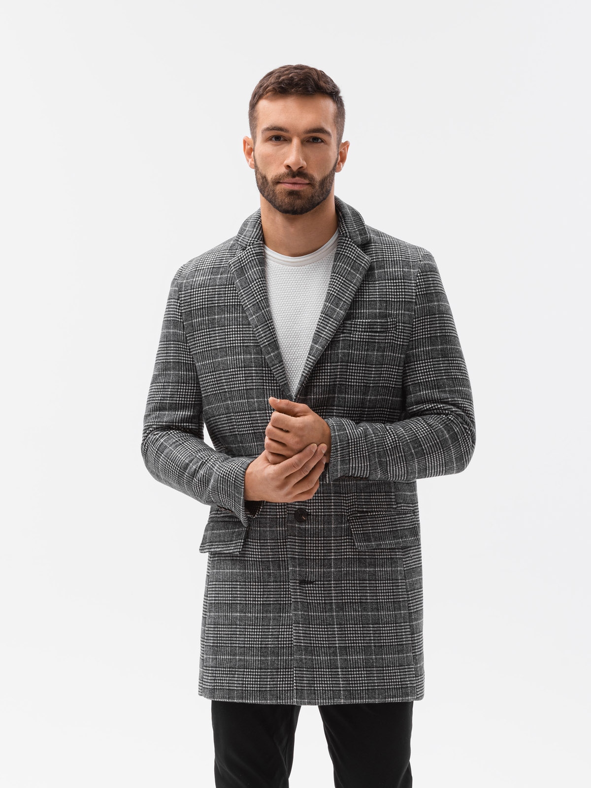 Чоловіче класичне пальто в клітку C499 чорне L
