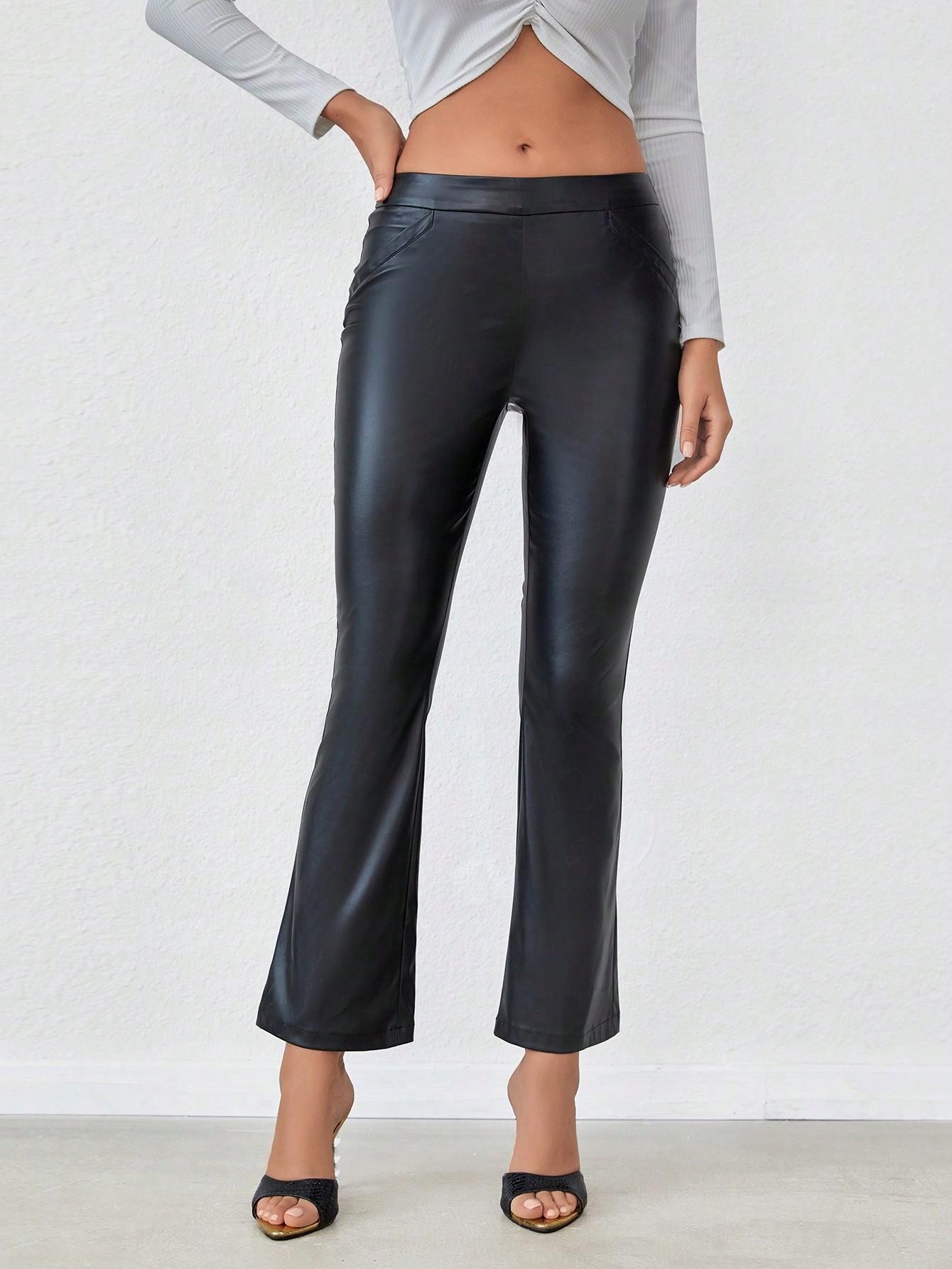 КЛАСИЧНІ ШТАНИ З ЕКОЛОГІЧНОЇ ШКІРИ BLACK FIT SMOOTH LONG SHEIN L
