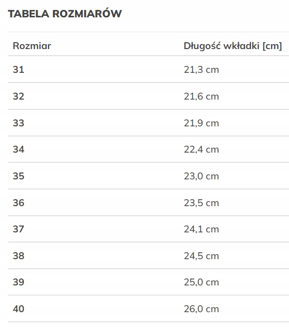 - Розмір 40 -Довжина устілки [см]: 26,0 см