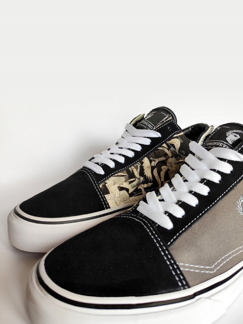 Класичні кросівки з візерунком зображення Пабло Пікассо "Герніка" з 1937 року. На малюнку показано хаос, смерть і страх перед людьми, які приносять війну в тихе місто.