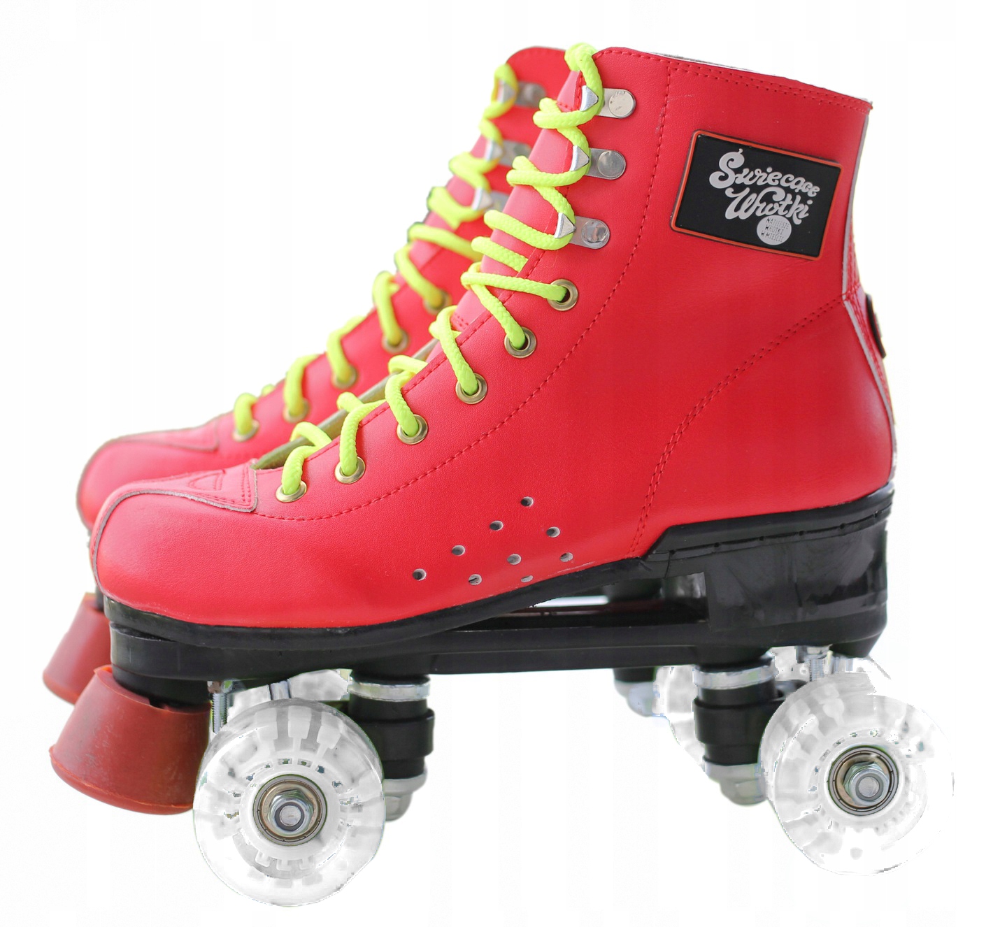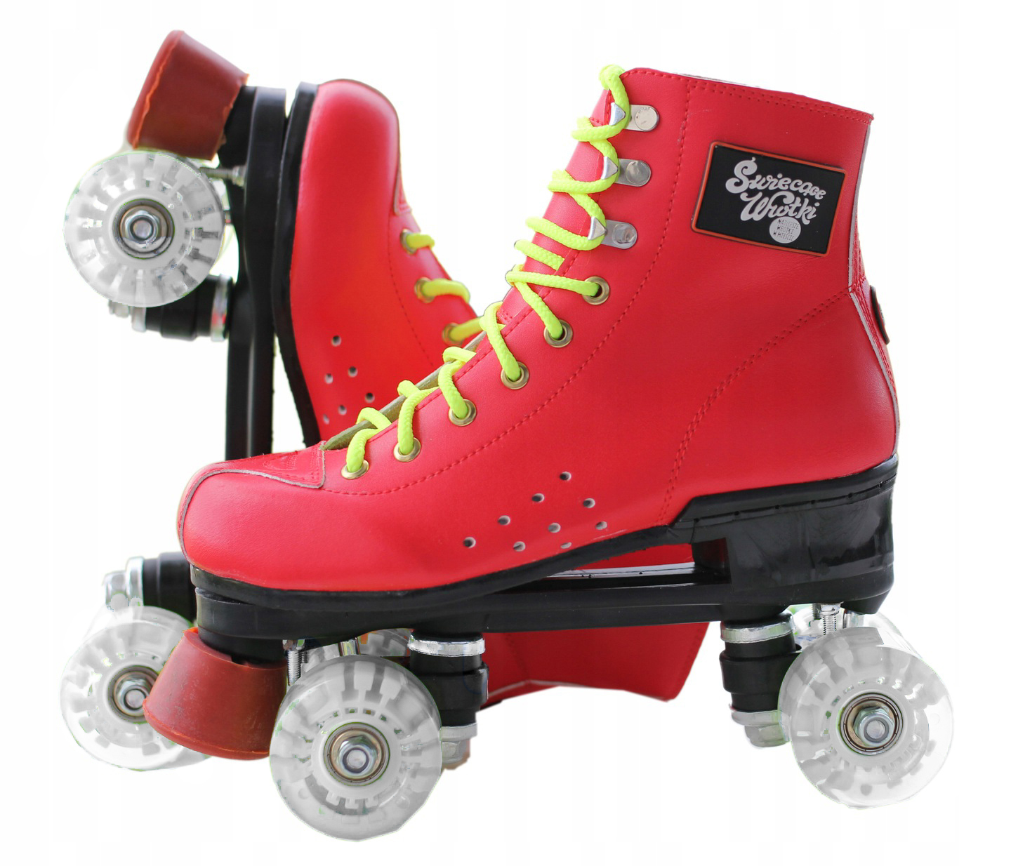 КЛАСИЧНІ РЕТРО КОВЗИ З ЧЕРВОНОЇ ШКІРИ ЯКІСНОГО РОЗМІРУ 37 КОЛЕСА, ЩО СВІТЯТЬСЯ