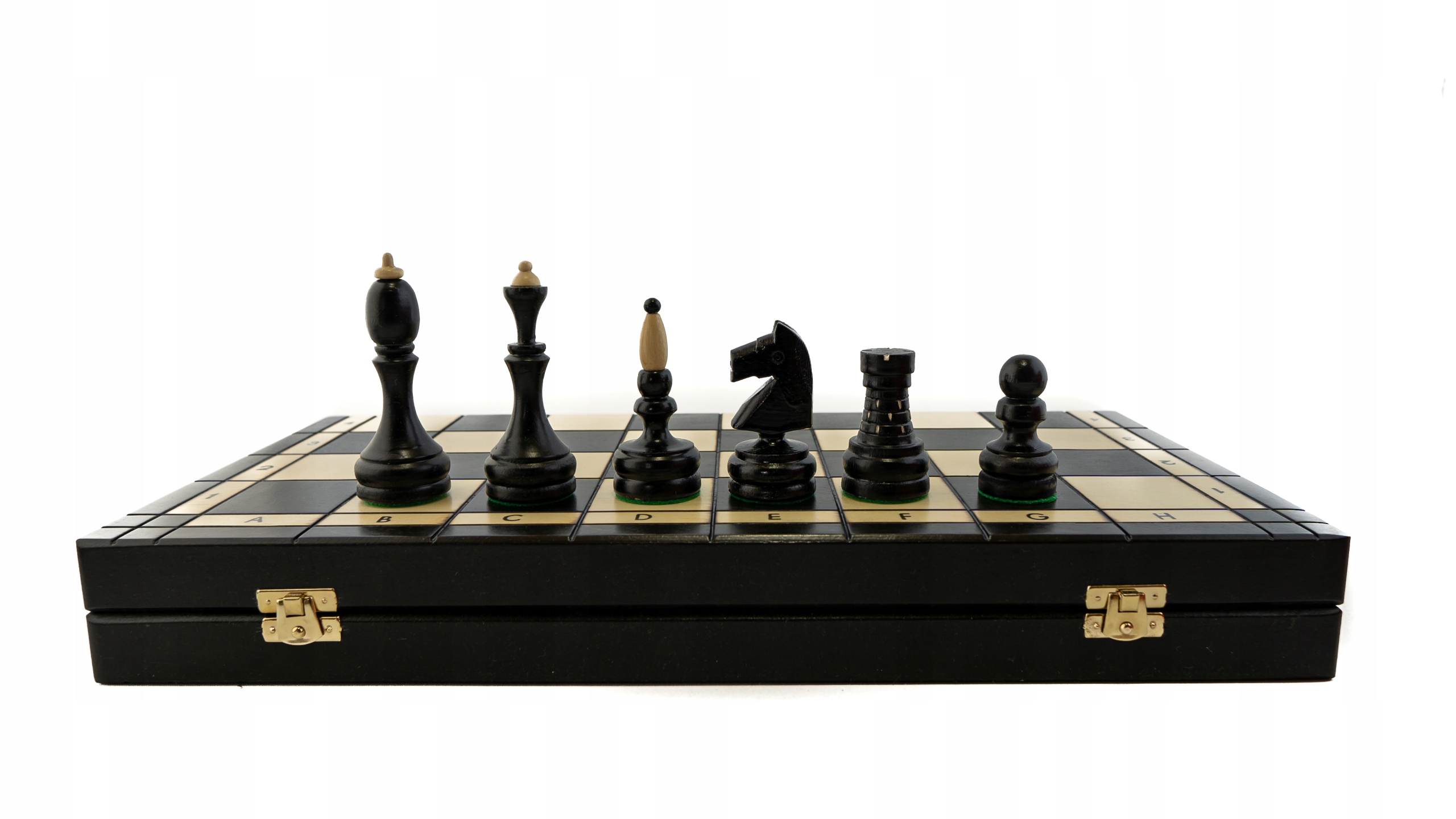 Шахи з грабового дерева, наповнені металом. Інкрустована коробка з червоного дерева та платана.