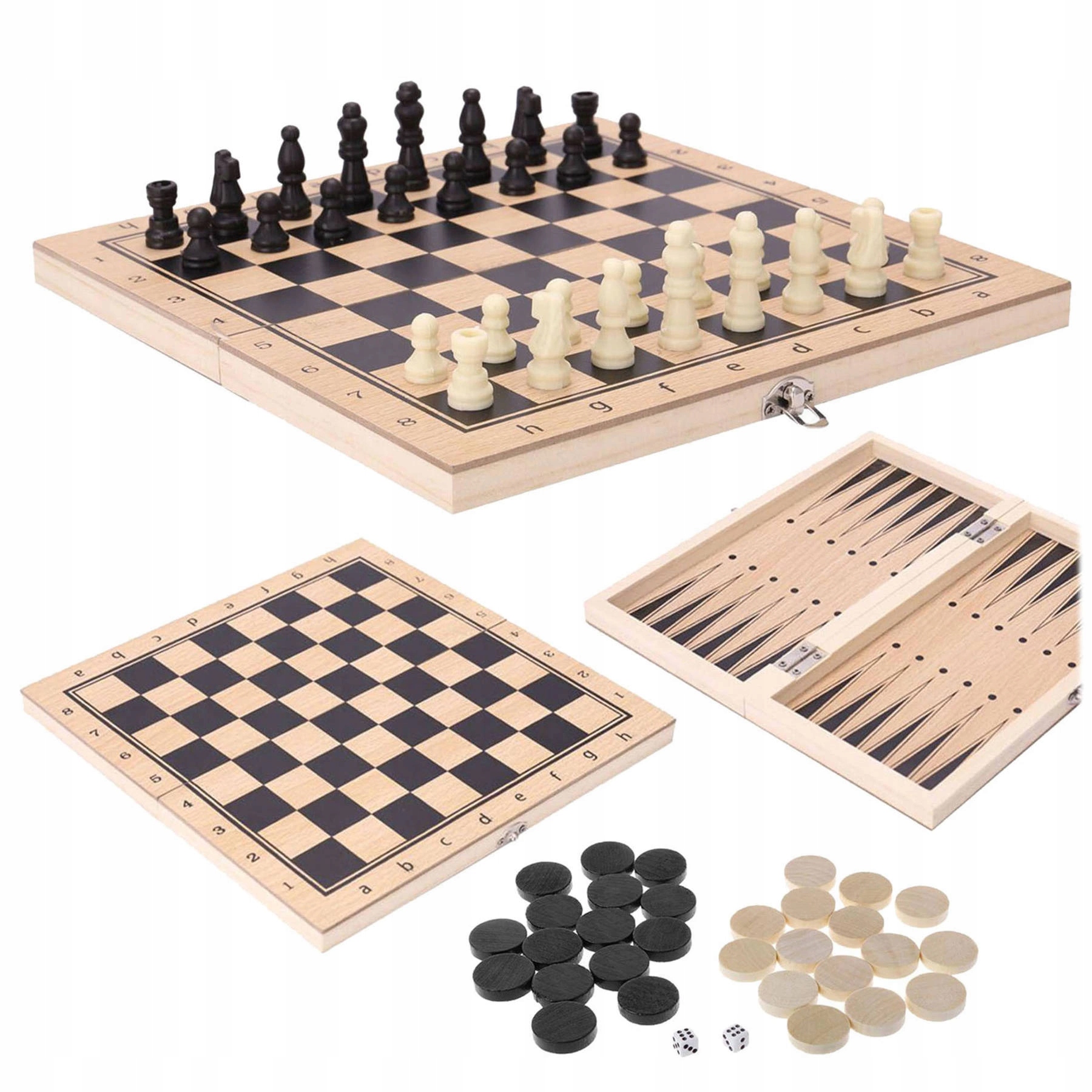 КЛАСИЧНІ ДЕРЕВ'ЯНІ ШАХИ СКЛАДНІ 3 в 1 ФОНОВІ КІСКИ ДЛЯ ДІТЕЙ