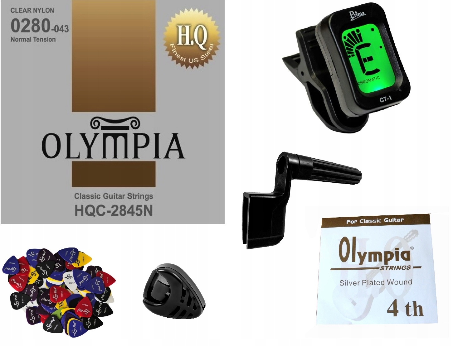 Вибір Правильні струни для класичної гітари - це дуже важлива справа, тому що чим краще струни, тим краще якість звуку, і слід пам'ятати, що кожна модель струн відрізняється. Звісно, не обов’язково купувати найдорожчі струни, щоб насолоджуватися прекрасним звуком. Прикладом недорогих струн, які можуть вразити, є струни OLYMPIA HQC Normal Tension, які звучать дуже чисто і природно і не викликають проблем з натисканням, тому вони також є хорошим вибором для гітаристів-початківців. Додатковою перевагою цих струн є запасна струна D4.