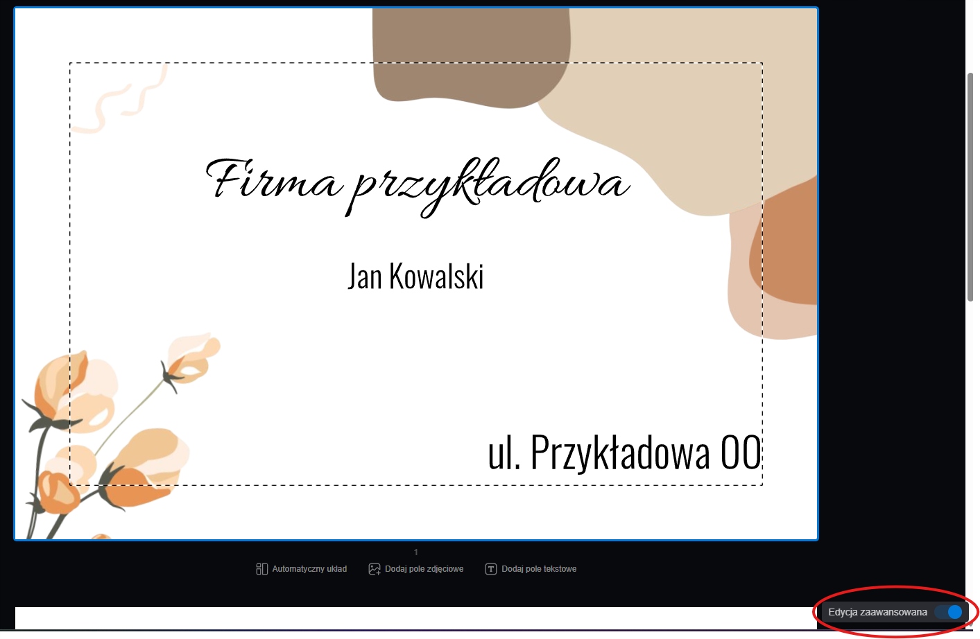 Для полегшення вашого дизайну ви не зможете перемістити текстові рамки та кліпарт за замовчуванням, щоб підтримувати естетику проекту. Однак, якщо ви хочете внести зміни до шаблону, увімкніть розширене видання, що дозволить вам редагувати проект без кордонів.