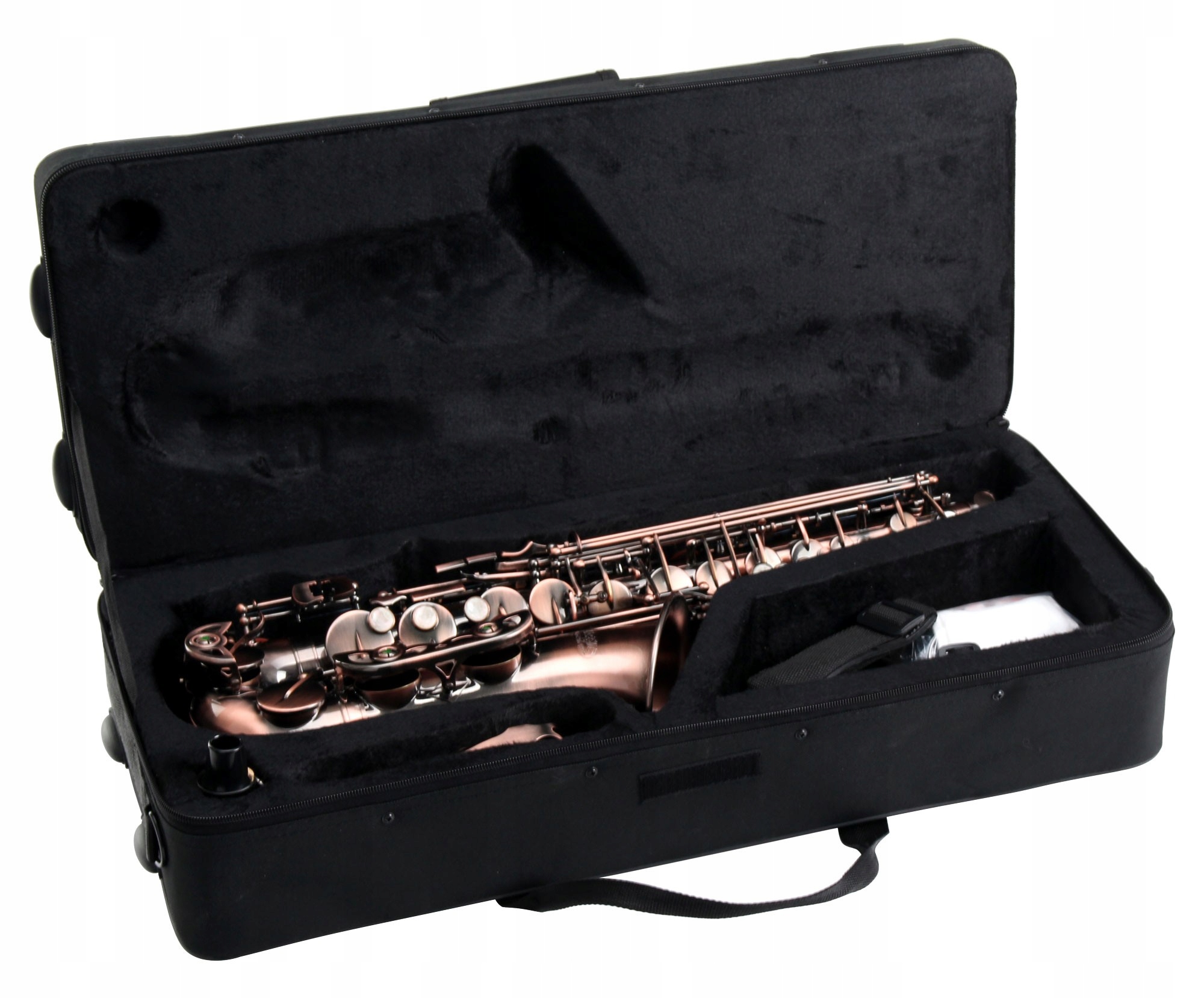 Альтовий саксофон з латуні, версія Antique Red Vintage, лакована. Повний, теплий звук. У цьому ціновому діапазоні ви будете здивовані його ідеальною якістю виготовлення та чудовим звуком. Дуже легкий і швидкий відгук робить цей саксофон ідеальним вибором для початківців.