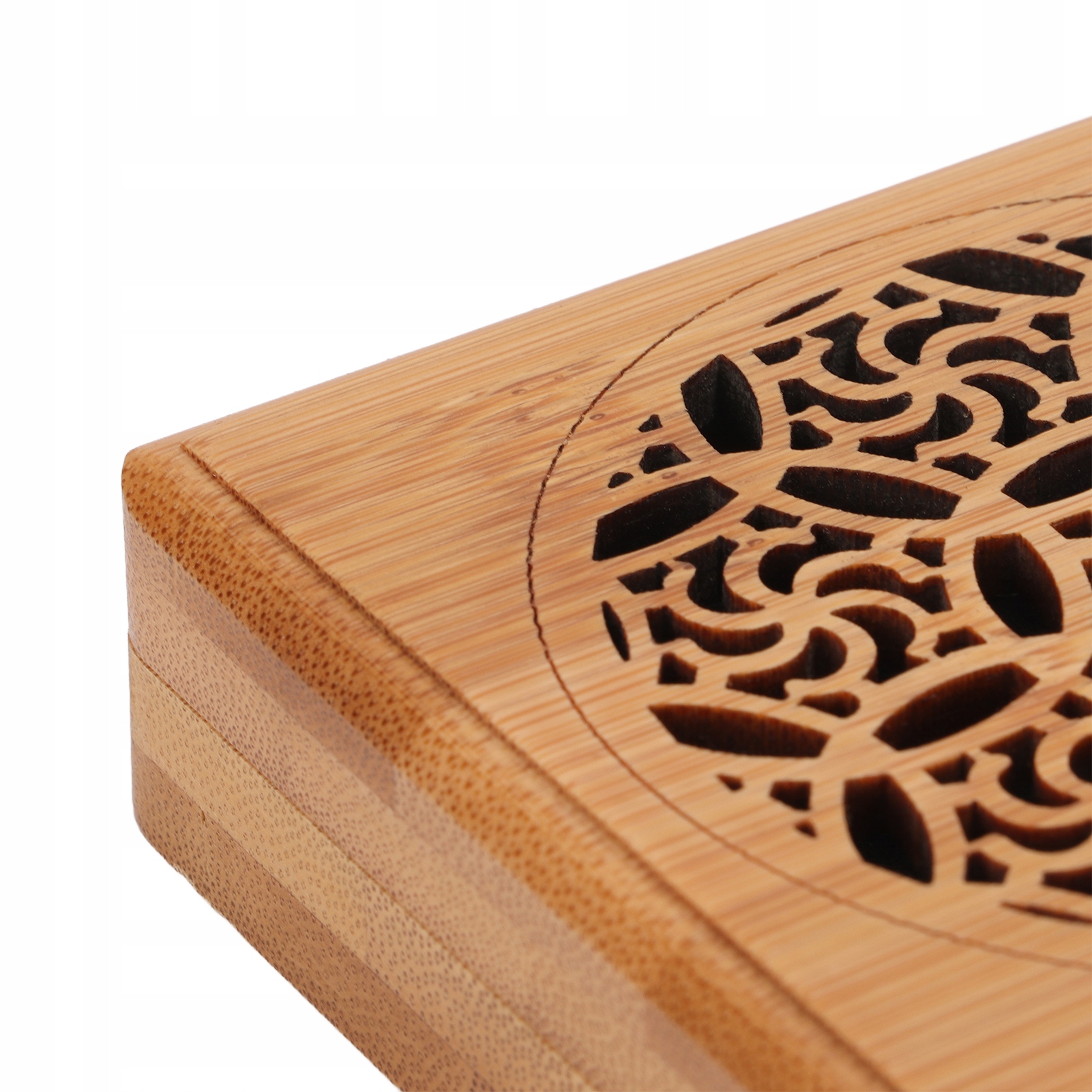 1. Бамбуковий матеріал: підставка для пахощів виготовлена з бамбукового матеріалу, який є екологічно чистим, міцним і довговічним і може використовуватися протягом тривалого часу. 2. Ретро-стиль: цей тримач для ароматичних паличок розроблений у вінтажному стилі, щоб додати неповторний штрих вашому дому та офісу. 3. Домашній декор: з елегантним, сучасним і класичним сільським виглядом цей тримач для ароматичних паличок можна використовувати як домашній декор, прикраси ручної роботи або класичні меблі. 4. Ідеальний подарунок: стильний і простий, цей тримач для ароматичних паличок стане ідеальним практичним подарунком для ваших друзів і родини. Я впевнений, що ваші друзі будуть від цього в захваті. 5. Застосовна сцена: курильниці мають чудову якість виготовлення, підходять для кабінету, столу, спальні, кімнати для йоги тощо.