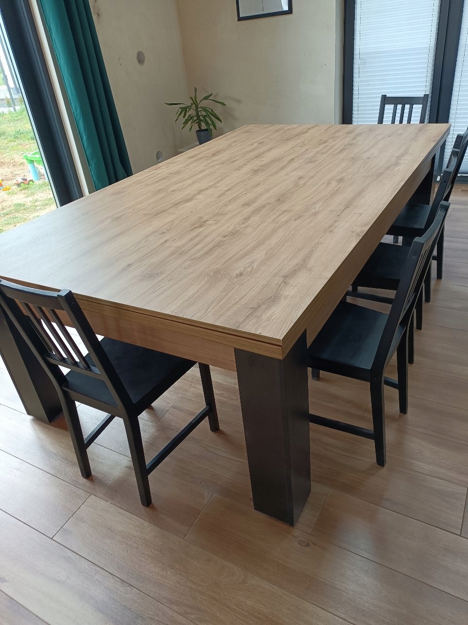 з ламінованої дошки, складається з двох частин, і служить банкетним столом,