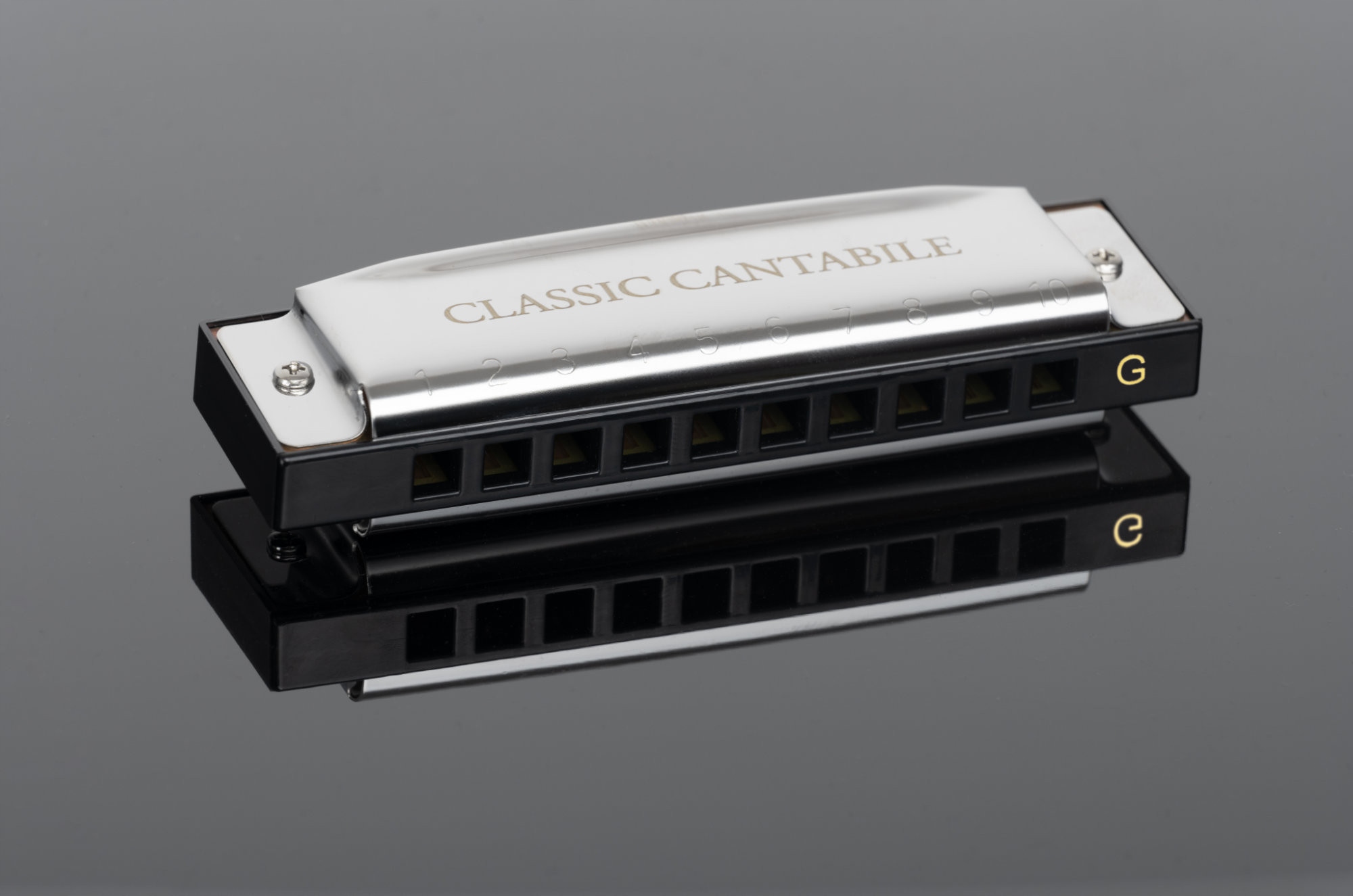 Діатонічна гармоніка соль мажор з 10 пластинами товщиною 1 мм, 10 високоякісними стразами з фосфорної бронзи та хромованою оболонкою з нержавіючої сталі. У набір також входить м’яка тканина для чищення та пластикова упаковка.