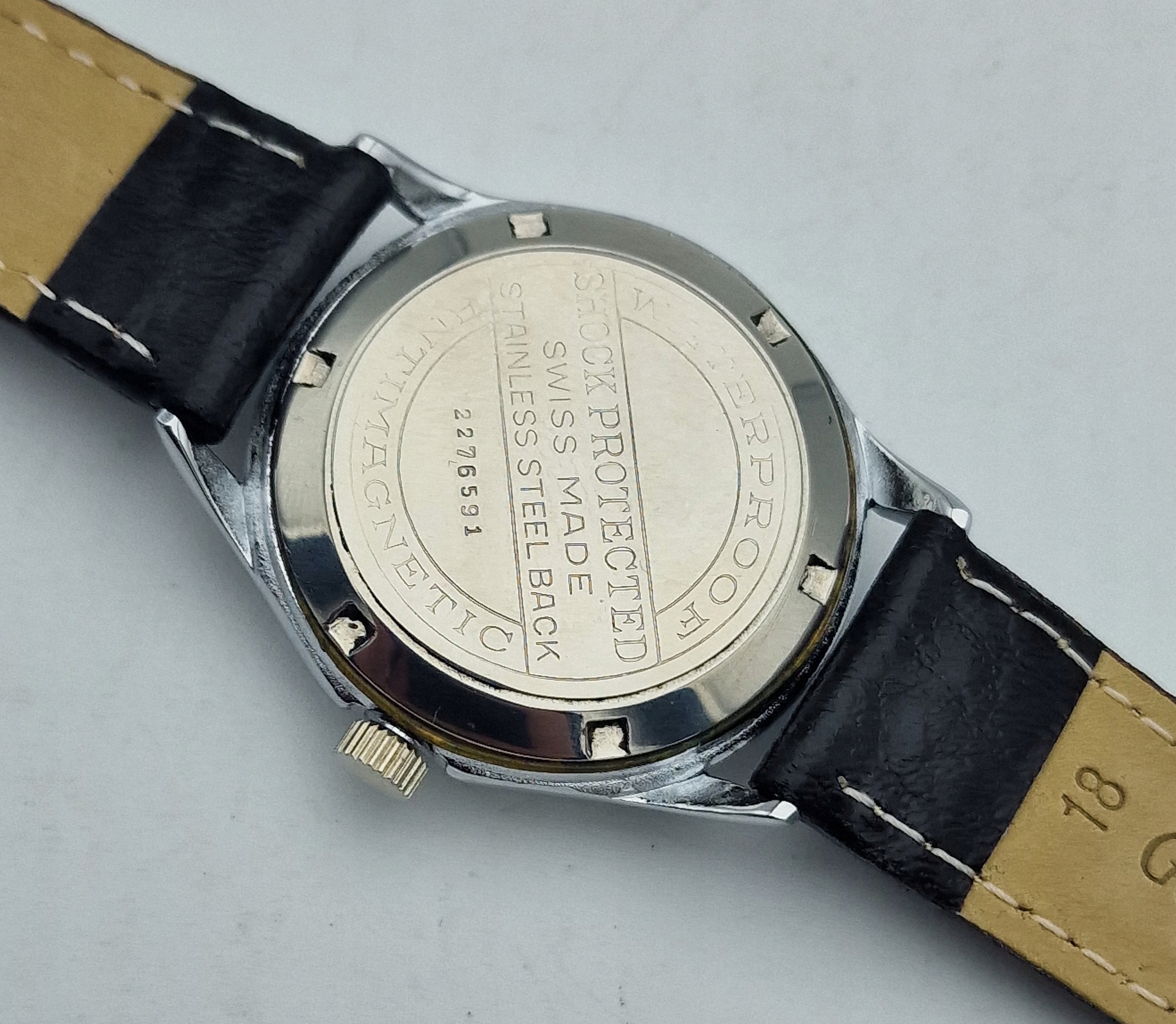 - Chromed конверт. Задня кришка вимкнена, на ній є підписи: " водонепроникна, нержавіюча сталь спина, швейцарська, антимагнітна, ударна захищена ". Мереживо в ідеальному стані. Конверт у ідеальному стані, показаний на знімках.