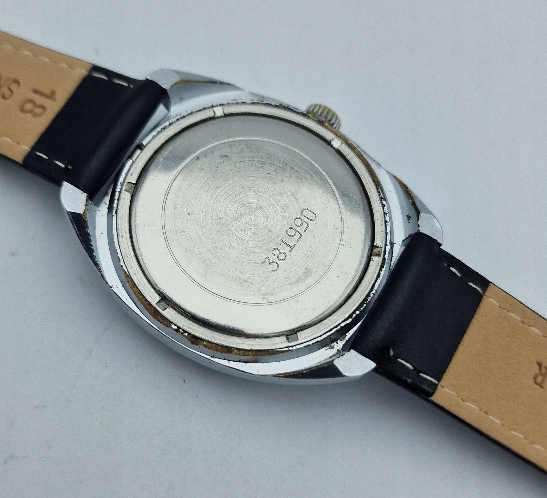 - Дивіться діаметр 3,7 см без шнурків та ременів. Висота з ручками 4,4 см. Новий чорний пояс, виготовлений з натуральної шкіри. Годинник насправді виглядає набагато краще. Я запрошую вас на аукціон.