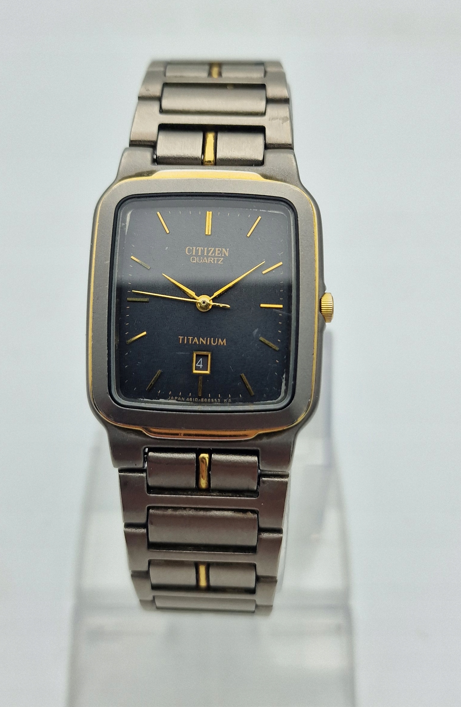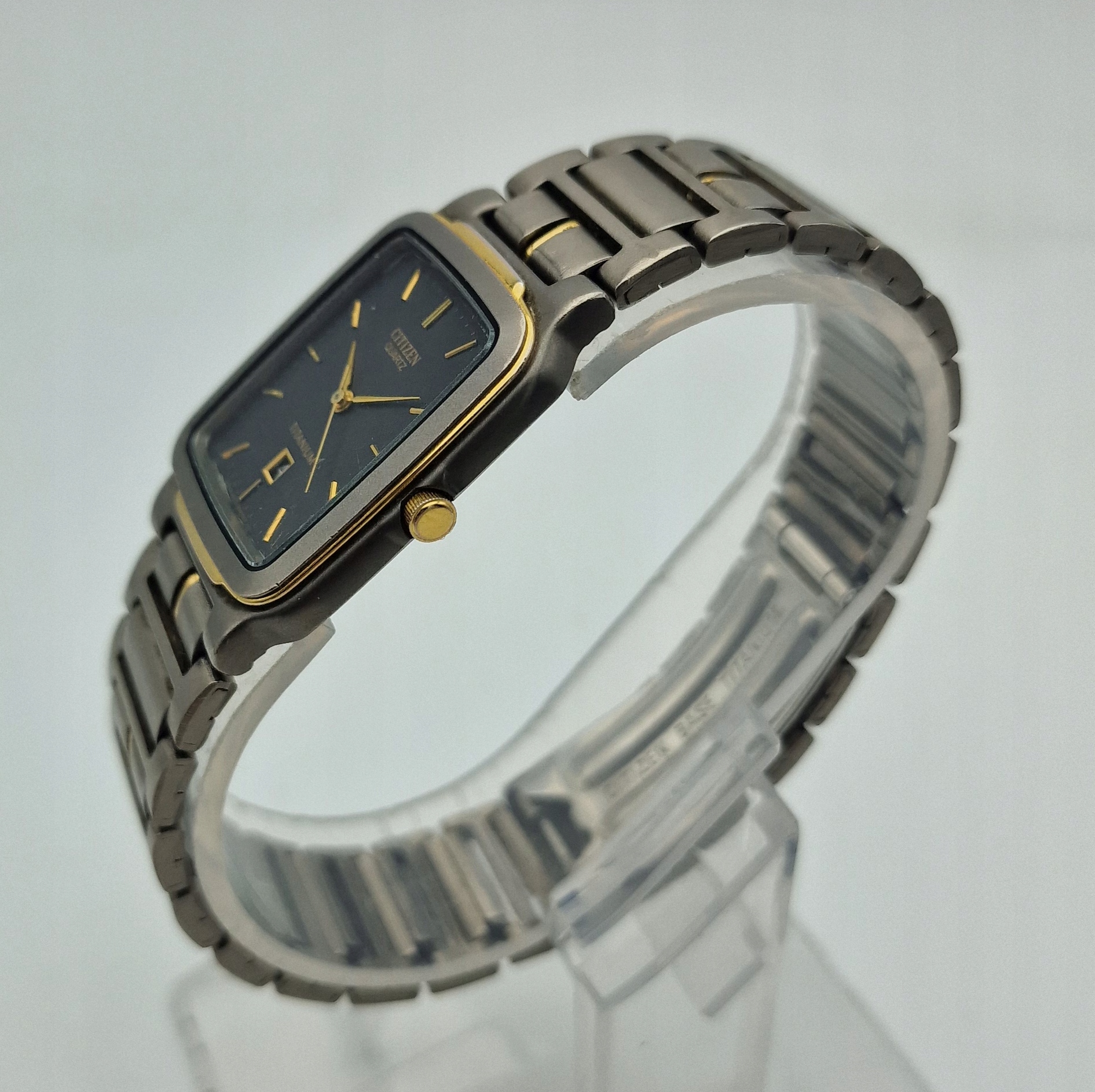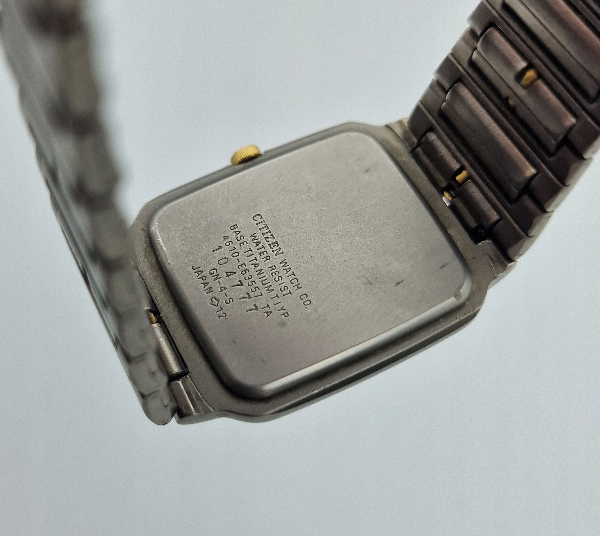 - конверт титану з позолоченими елементами. Кришка заднього затискача з підписами: " Citizen Watch Co, водний опір, базовий титан, Японія ". Оригінальне мереживо майже в ідеальному стані. Конверт у майже ідеальному стані, показаний на знімках.