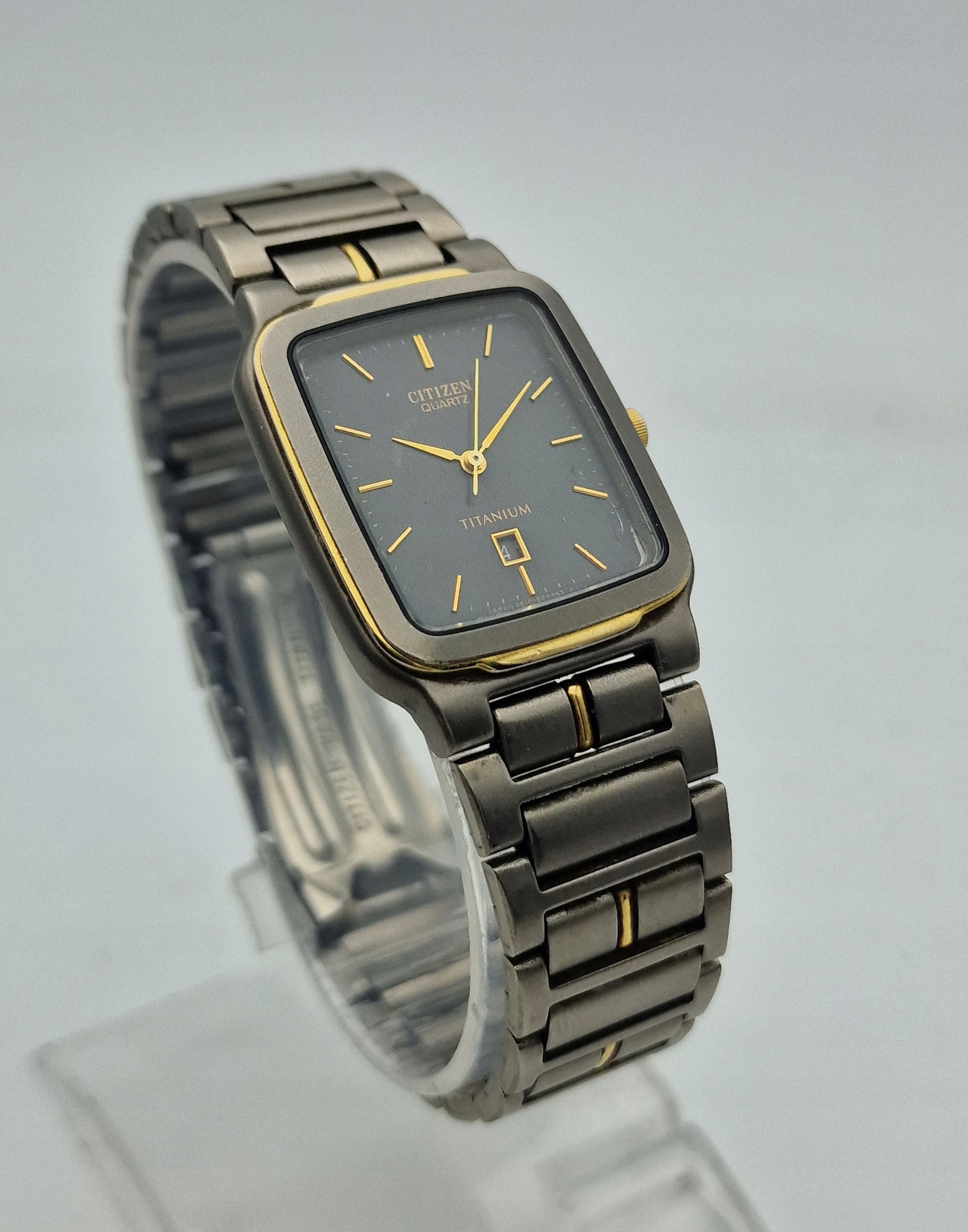 Цього разу я повинен запропонувати ознаменний годинник для цінителів та зачаровує. Це класична модель кварцового годинника громадянина титанового кварцу з 80 -х у конверті титану з позолоченими елементами. Годинник на хорошій і пунктуальній прогулянці. Майже в ідеальному стані ...