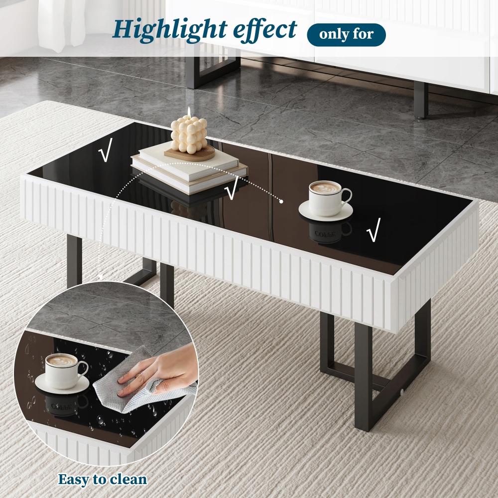 Цей мінімалістичний чорно-білий журнальний столик підходить до різноманітних стилів інтер’єру, від сучасного до стриманої розкоші, швидко перетворюючись на привабливий елемент у вашій вітальні.