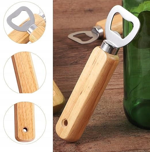 Акуратний та естетичний відкривальник пляшок, пиво - виготовлений з металу та дерева.