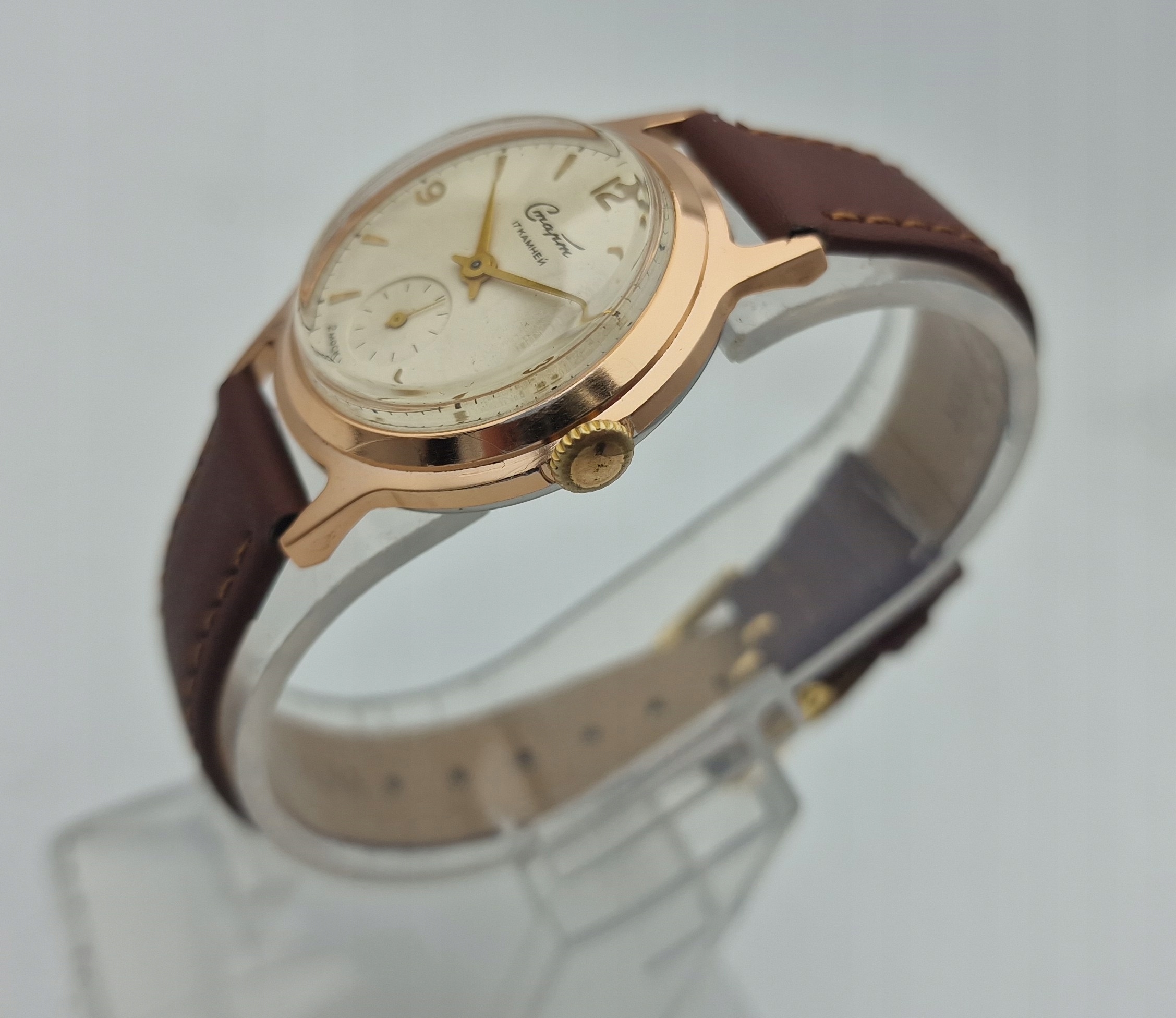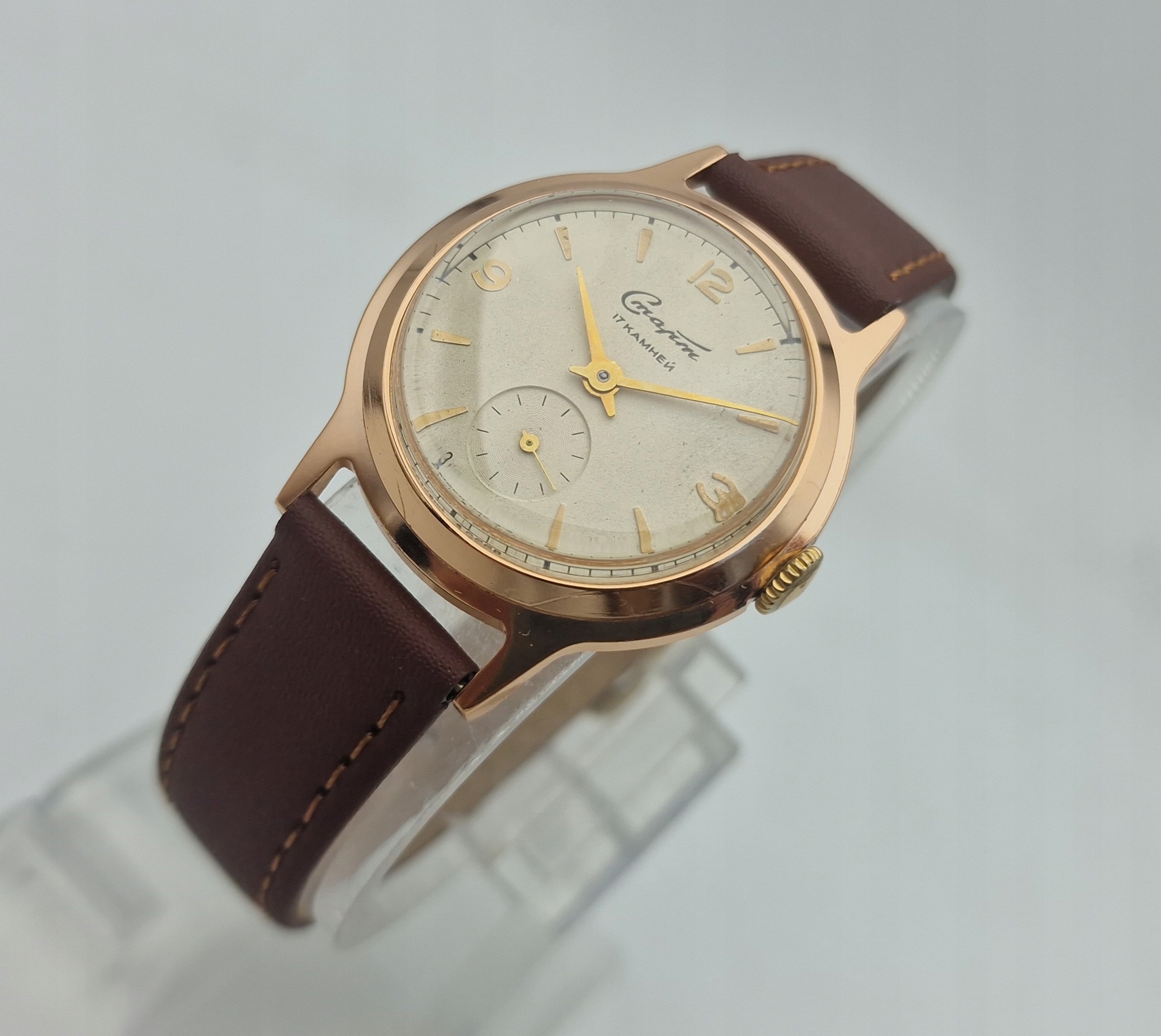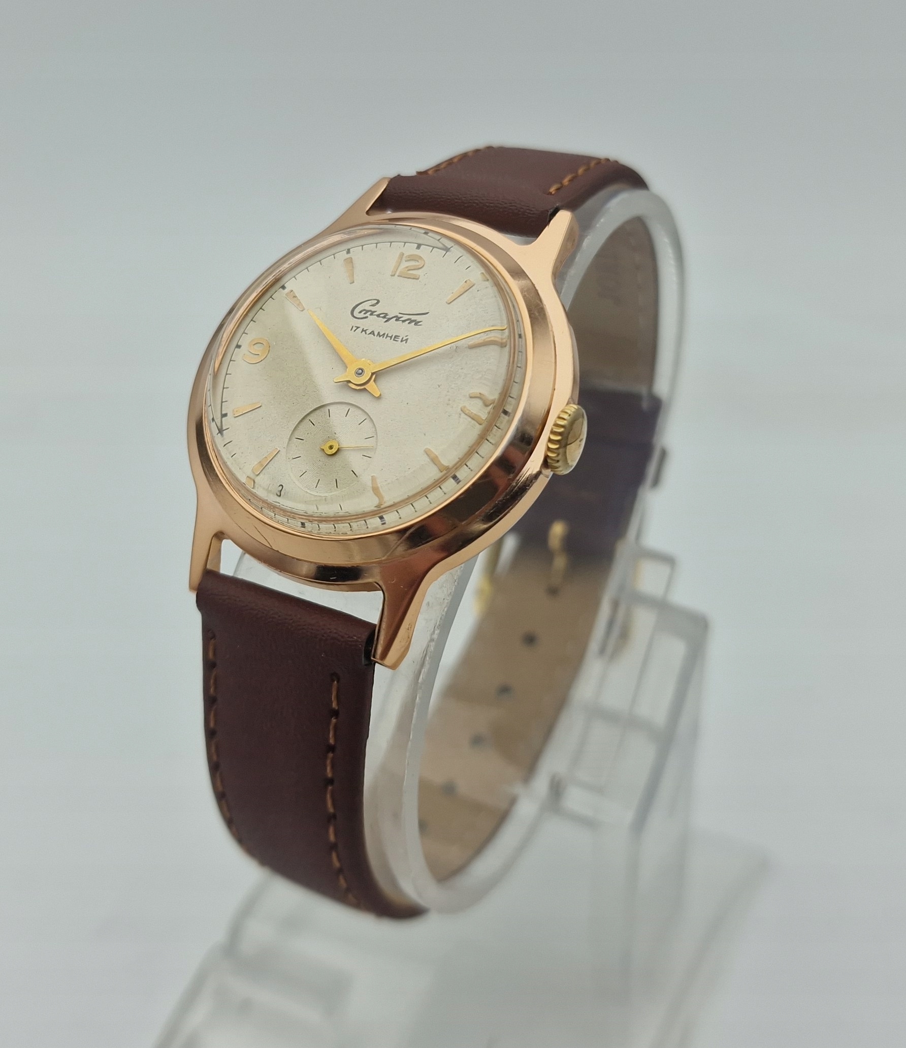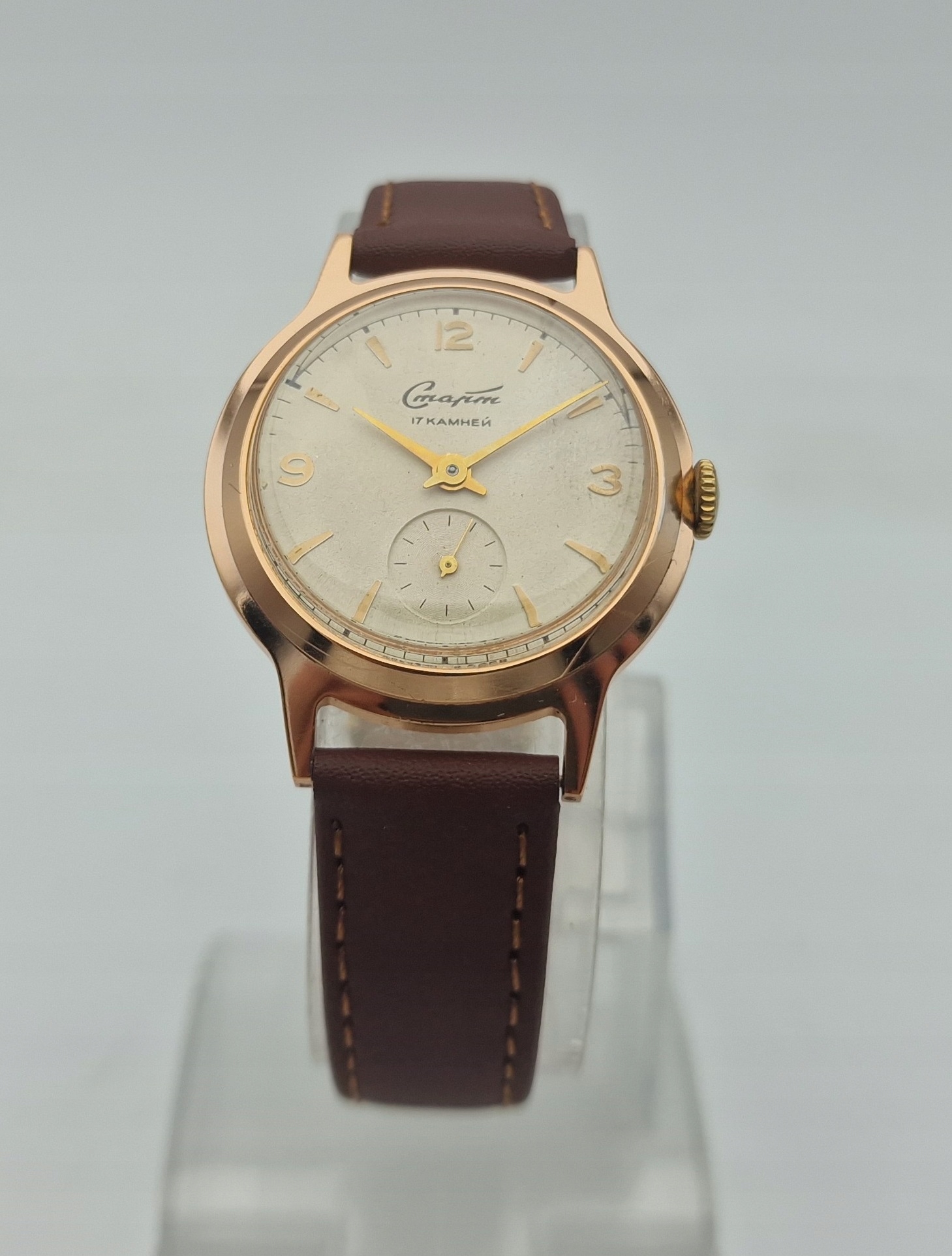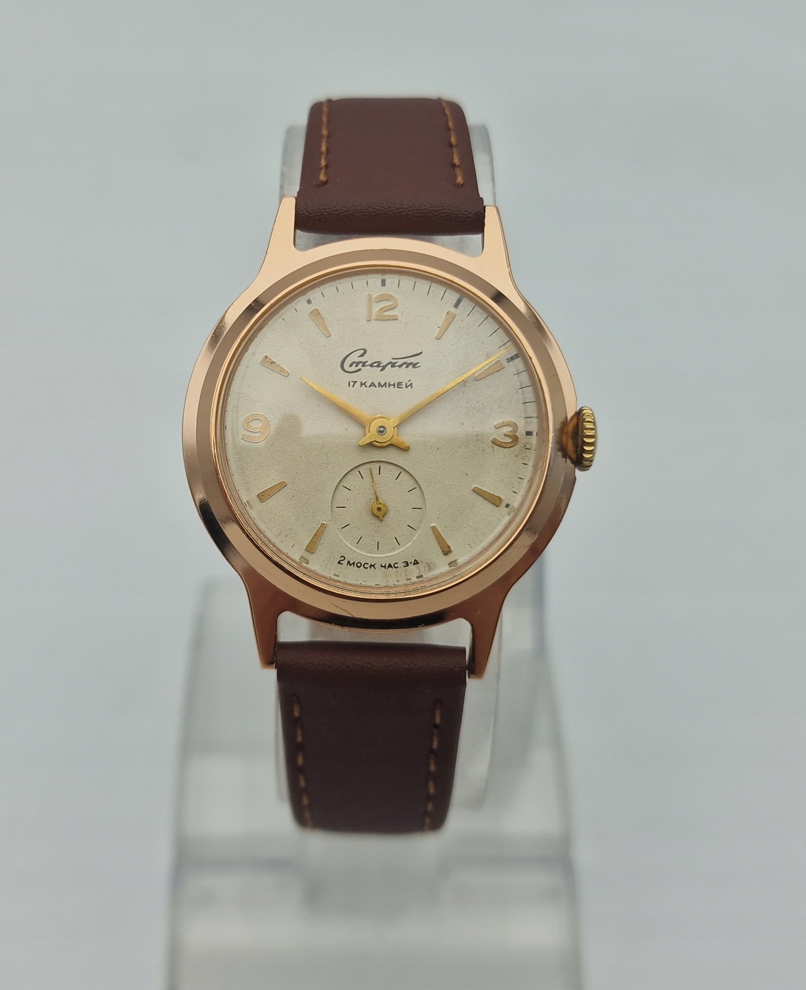 - Срібний металевий диск з окремою секундою о шостій годині. Підписаний щит: " старт, 17 каменів, зроблені в CCCP ". Щит майже в ідеальному стані, як у представлених фотографіях.