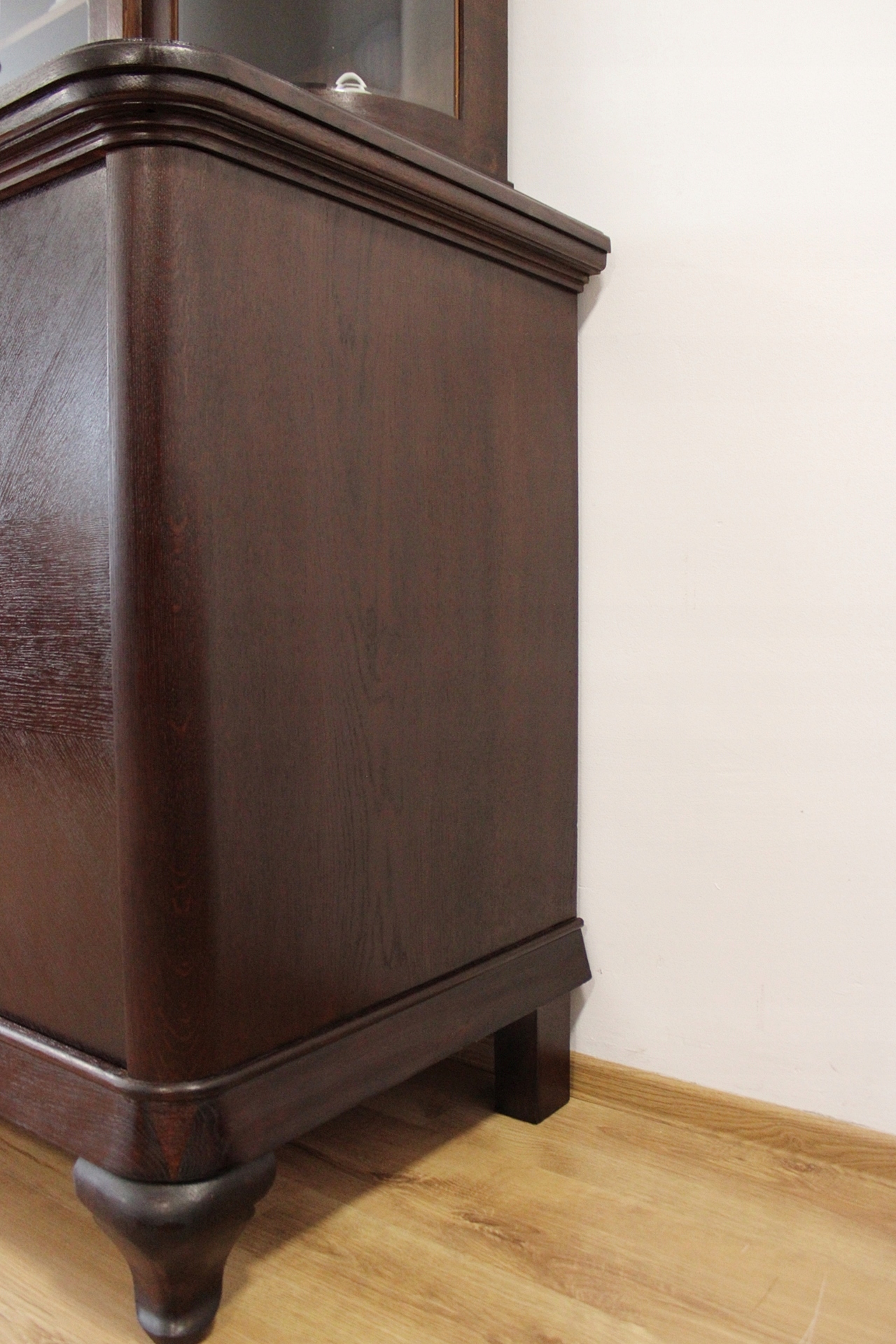 Оригінальна тумба з гнутими ніжками, з гарною вітриною зі скошеним склом.