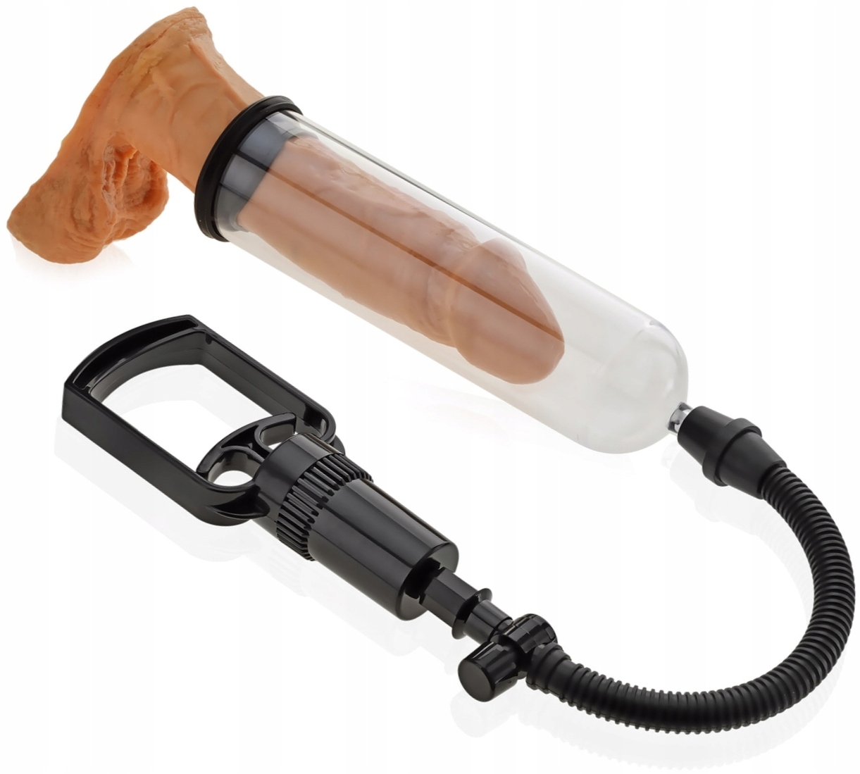 Ручна помпа для пеніса з розміром циліндра, меншим за стандартний. Набір складається з циліндра, ручного насоса з запобіжним клапаном і 3 ущільнень різного діаметру. Циліндр довжиною 18 см і внутрішнім діаметром 4,8 см з прозорою стінкою дозволить вам спостерігати за тим, як пеніс росте і стає все більш набряклим. Силіконові ущільнювачі діаметром 1,8 см, 2,3 см і 3,0 см дозволяють підлаштовуватися під будь-який розмір члена, забезпечуючи максимальний комфорт використання. Регулярне використання помпи може принести вражаючий ефект збільшення пеніса. Якщо ви хочете відчути себе більш мужнім і впевненим у собі, скористайтеся насосом тимчасово, перед статевим актом. Для отримання найбільшого задоволення від використання використовуйте мастило на водній основі. Змастіть ним пеніс або отвір ущільнювача.