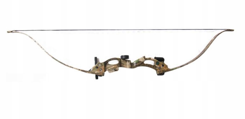 A спортивний лук на основі азіатського дизайну лука. Ручка і ручки виготовлені з високоякісного синтетичного волокна і покриті стійкою до подряпин камуфляжною фарбою. Міцна тятива кріпиться до виїмок у верхній частині дужок лука.