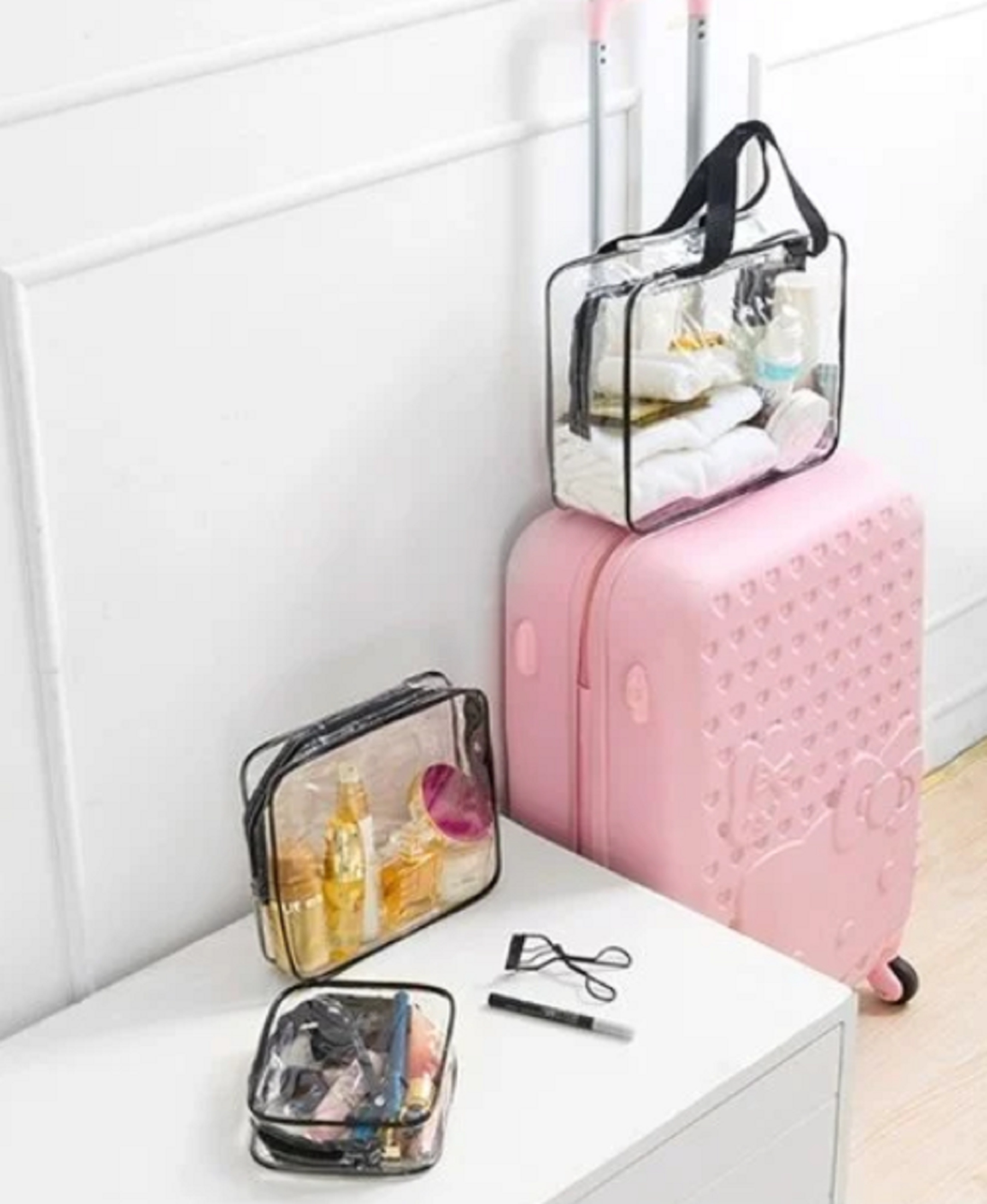 Встановити 3in1 складається з трьох косметологів різного розміру. виготовлений з прозорого пластику pvc , що є водонепроникним і винятково простим у чищенні .
