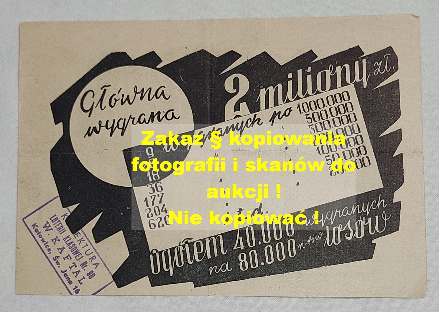 На звороті є марка інкасаторської контори в Катовіце.