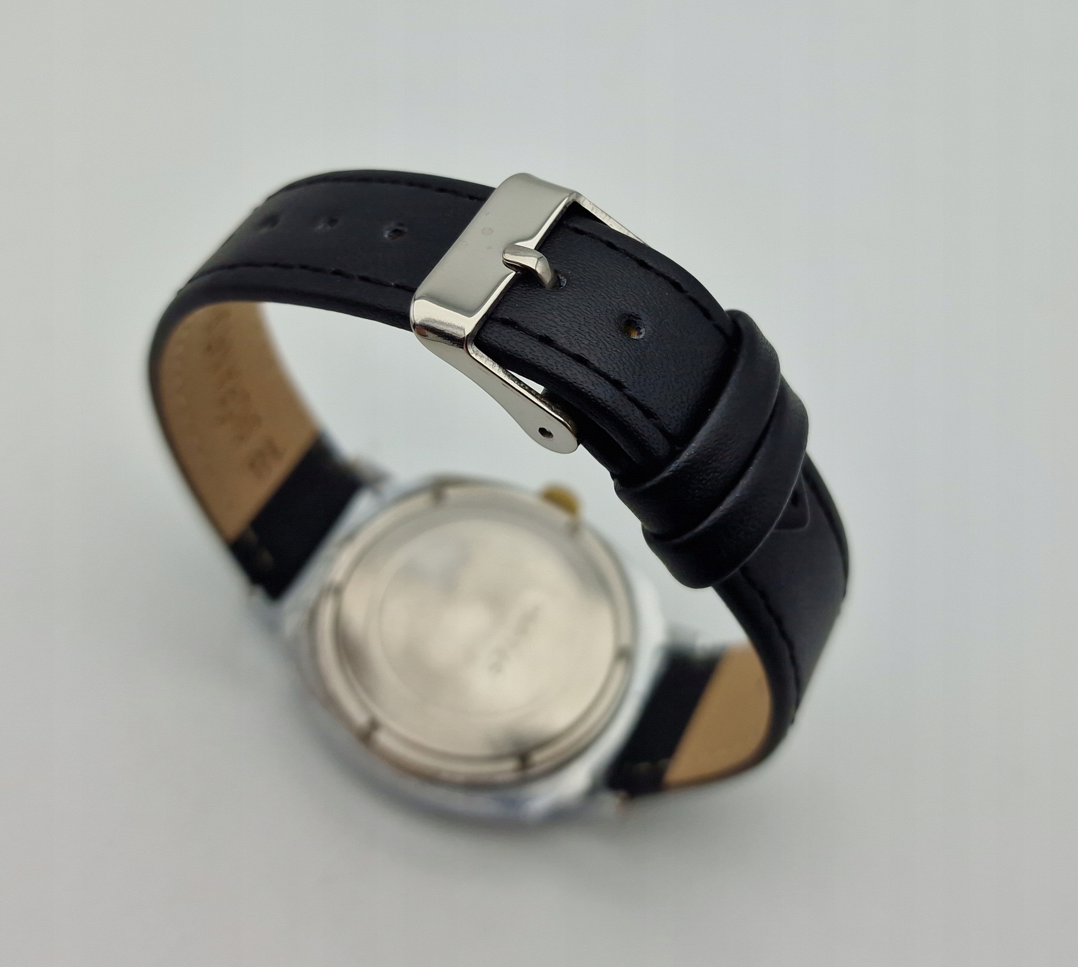 - Діаметр годинника 3,7 см без заводної головки та тримачів ремінця. Висота з ручками 4,6 см. У комплекті новий чорний ремінець з натуральної шкіри.
