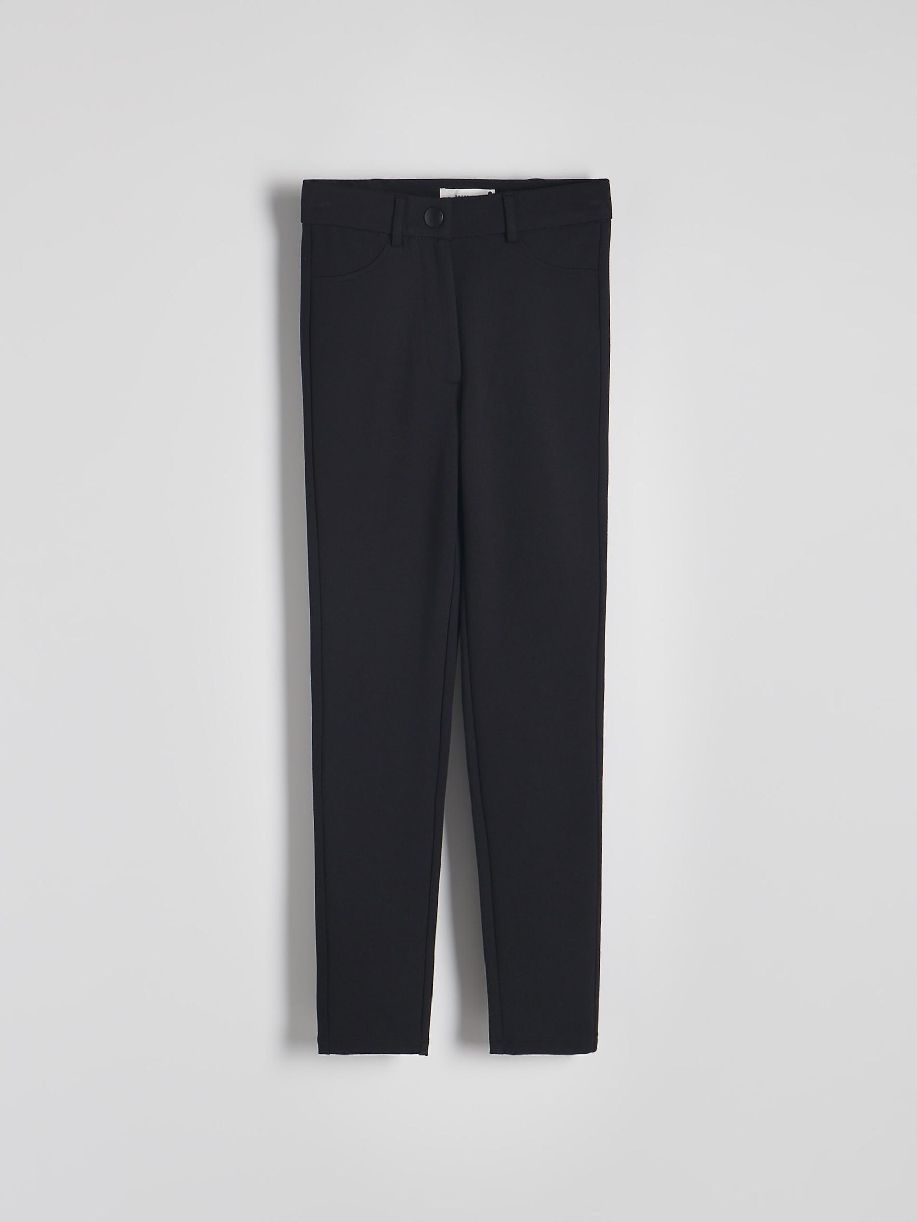KLASYCZNE CZARNE DZIANINOWE LEGGINSY SPODNIE RURKI DOPASOWANE WYSOKI STAN S