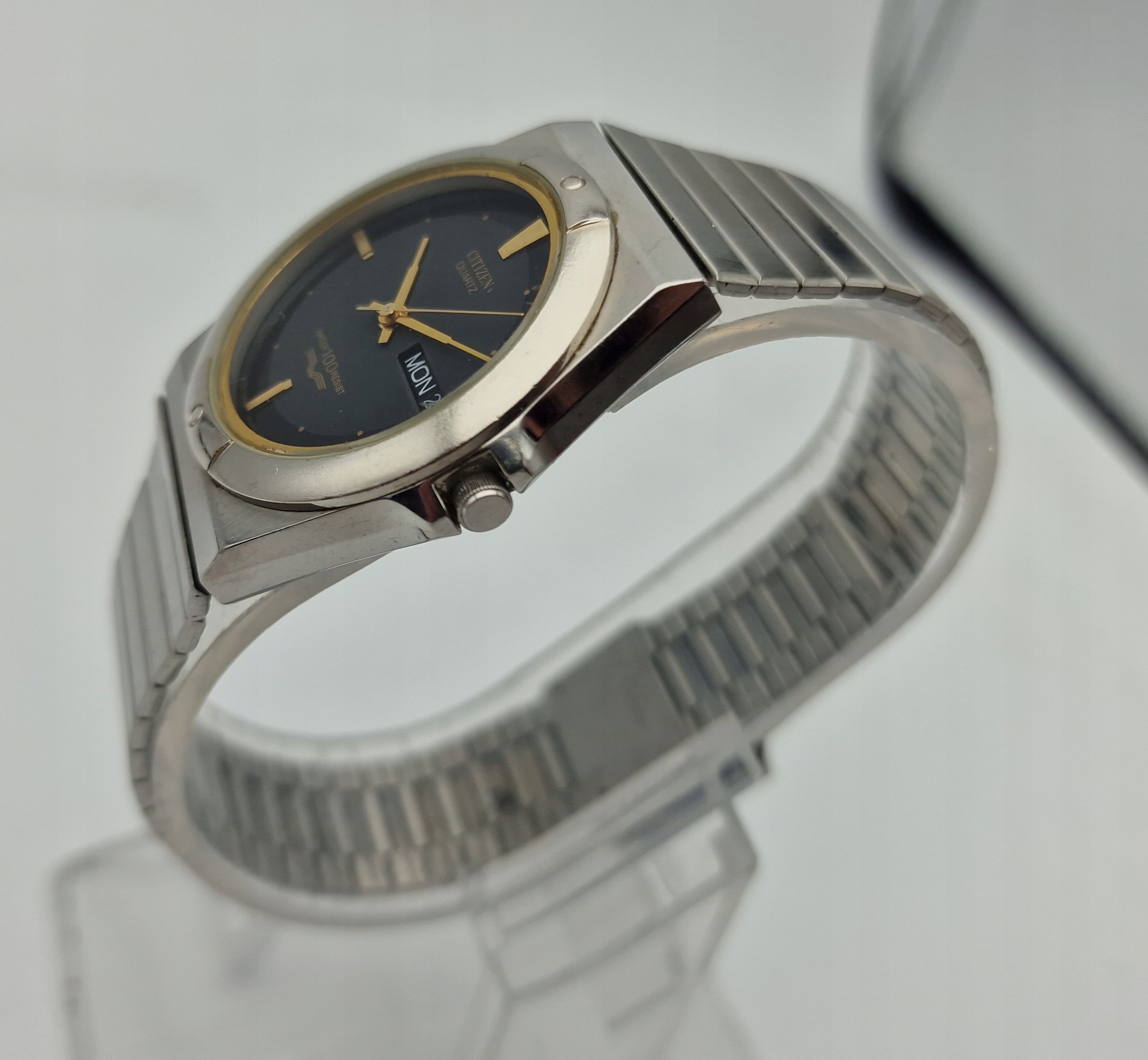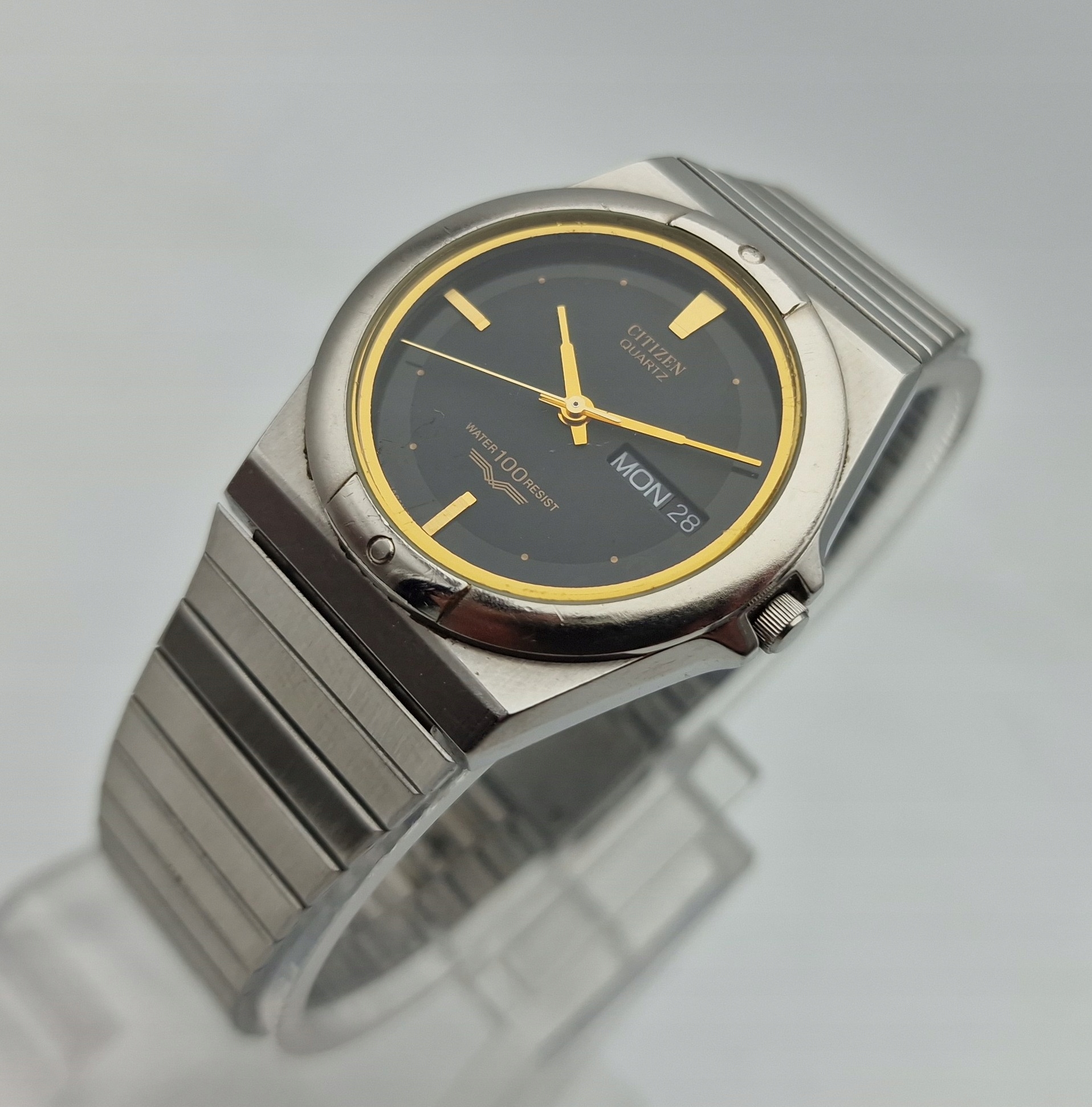 KLASYCZNY VINTAGE STALOWY MĘSKI ZEGAREK CITIZEN QUARTZ LATA 80-TE - UNIKAT
