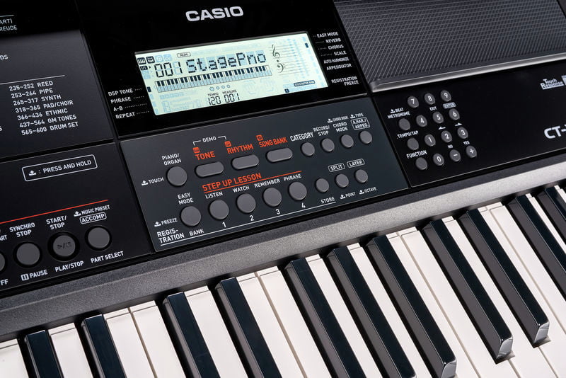 Новий звуковий модуль AiX Sound Source має у 8 разів більше потужності, ніж попередня версія, і має нові звуки та ритми. Технологія AiX дозволяє збільшити тривалість звуків, а гітари отримати покращені звуки дисторшн і симуляції підсилювачів і кабінетів. У роялів і електронних піаніно тепер більше динаміки, а у струнних інструментів ширше і насиченіше звучання. Новий звуковий модуль також надає новий діапазон ритмів, включаючи стилі таких артистів, як Джастін Тімберлейк, Майкл Джексон і Maroon 5. Звукова система Серія CT-X має нову вдосконалену звукову систему, завдяки якій ви почуєте потужність низьких басів, а також чистого звуку піаніно. Динаміки зі збільшеною потужністю та покращеними характеристиками забезпечують краще відтворення кольорів інструменту, ніж будь-коли раніше. Разом із новими звуками та ритмами вони створюють повний ефект гри на інструменті високого класу. Широкий спектр можливостей завдяки новим і вдосконаленим функціям запису та персоналізації інструменту дозволяє легко створювати власну музику. Завдяки новій функції Tap Tempo вам більше ніколи не доведеться турбуватися про встановлення темпу, а синхронізована кінцівка дає змогу закінчити пісню саме тоді, коли ви цього хочете. Кнопка вимкнення динаміки дозволяє швидко змінювати артикуляцію, що, безсумнівно, буде корисно під час запису частин із кількома різними звуками та рівнями експресії. Нова кнопка призупинення запису дозволяє плавно призупиняти та відновлювати процес, даючи вам час подумати про наступний крок. Навчання високого рівня Нова модель CT-X700 має 160 вбудованих пісень і покрокову систему уроків, завдяки якій можна освоїти гру в самих різних стилях. Завдяки функції повторення, допомозі пальців і остаточній оцінці гри ми можемо бути впевнені, що швидко й ефективно навчимося правильній техніці.