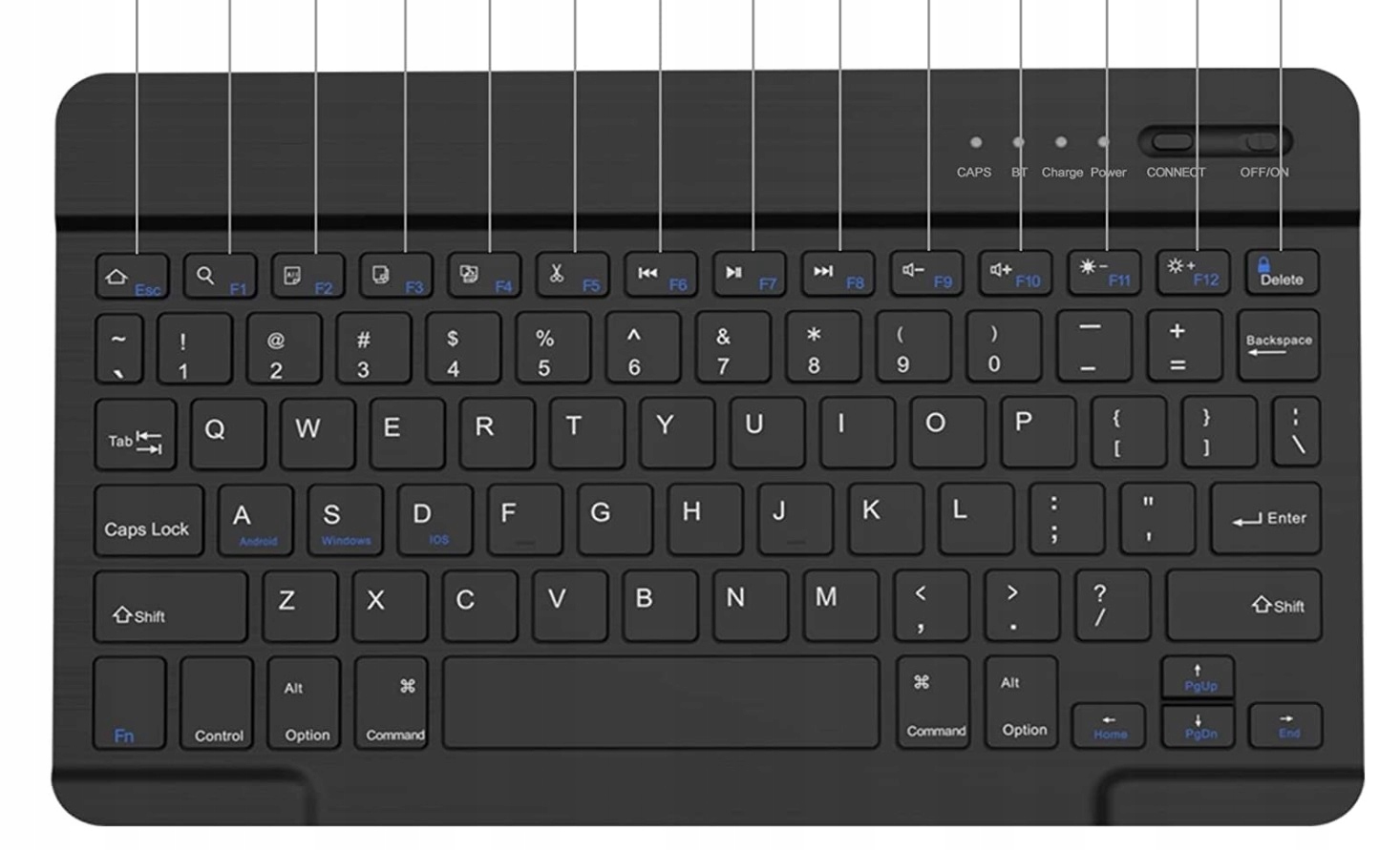 - Ви заряджаєте клавіатуру приблизно за 2,3 години залежно від циклу заряджання. Є діод, який показує розряд і зарядку клавіатури.