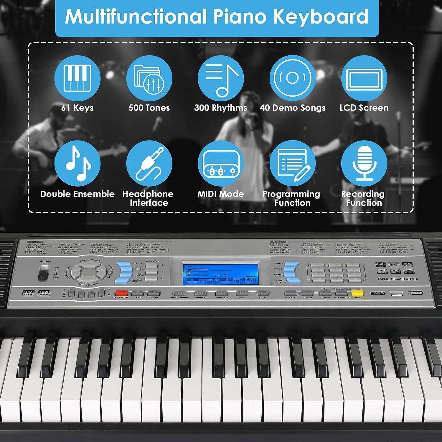 Mamizo 61 Piano Piano set, electric keyboard, digital piano for beginner children, 500 sounds and 3-level teaching mode, with stand, stool, LCD, desk, mp3/USB MIDI h1> information about this product h1> - Electric set of keyboard piano (without lights): electric piano): keyboard, piano keyboard with stand and лавка. Цей тримач клавіатури з цифровою піною регулюється до всіх висот, а підставка для клавіатури з трьома налаштуваннями висоти. Нетюнг живлення та мікрофон для співу під час гри. 4 У інтер'єрі додаються пов'язані моделі, які легко вивчити, завдяки тому, що початківці можуть закохатись у фортепіано та насолоджуватися музикою. 4 Музична клавіатура для дорослих чи дітей - хороший партнер. Інтелектуальна система святкування. Один ключ, правонаступництво, набір. Інтелектуальне поєднання програми для святкування. Оснащений розеткою OTG. Його можна використовувати для підключення відображення пристроїв, таких як планшети. 4 З системою відтворення та функцією відтворення. Система відтворення MP3 в розетці постійного струму, стерео-вихідні навушники, вхід та вихід аудіо, USB-MILI, DIS-інтерфейс U. DC: 9 V 500 MA. AC: 100-240 V