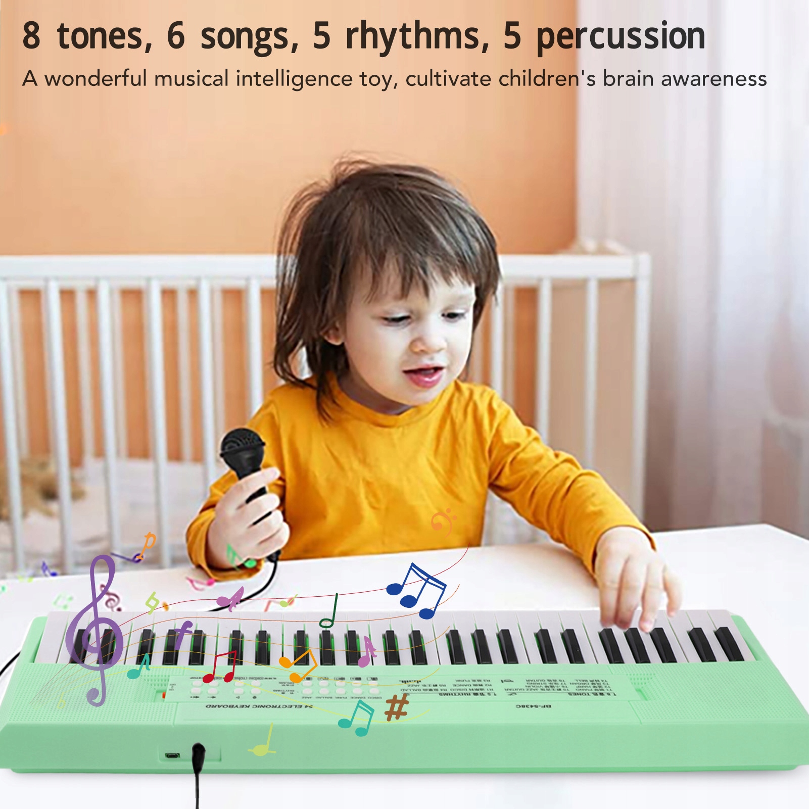 Функція: 1. Музика для дітей: з 8 тонн, 6 пісень, 5 ритмів та 5 барабанів, ця 54 ключова електронна клавіатура - це чудова іграшка -іграшка музичної Nintelligence, яка допомагає розвинути усвідомлення мозку дітей.