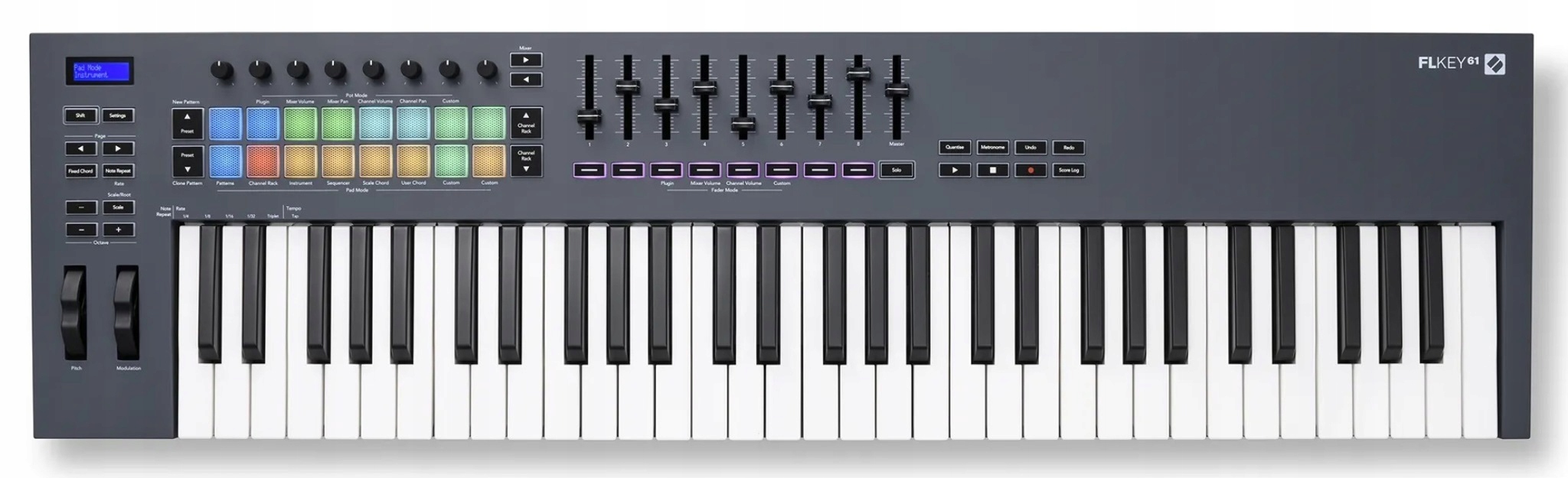 Novation FLkey 61 — найкраща повнорозмірна MIDI-клавіатура для створення музики у FL Studio. Завдяки контролю над секвенсором FL Studio, канальною стійкою та мікшером, а також креативними режимами Scale та Chord, FLkey 61 дозволяє вільно грати, щоб ви могли створювати ще більше музики.